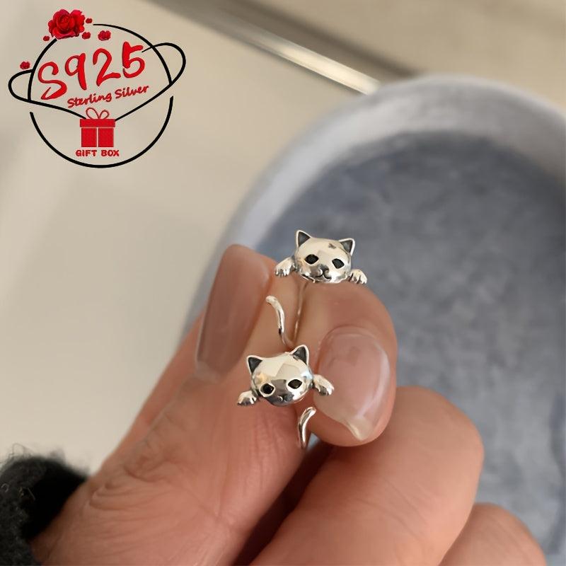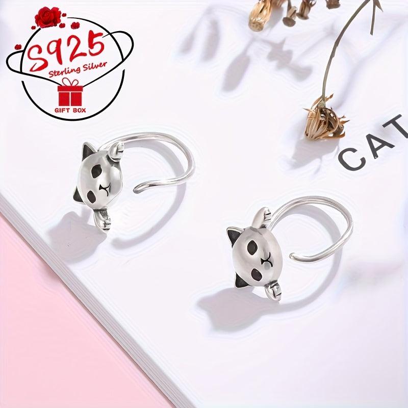 These cat ear hoop earrings are made of pure S925 silver, hypoallergenic and lightweight at only 1.8g. Ideal as a gift for cat lovers.