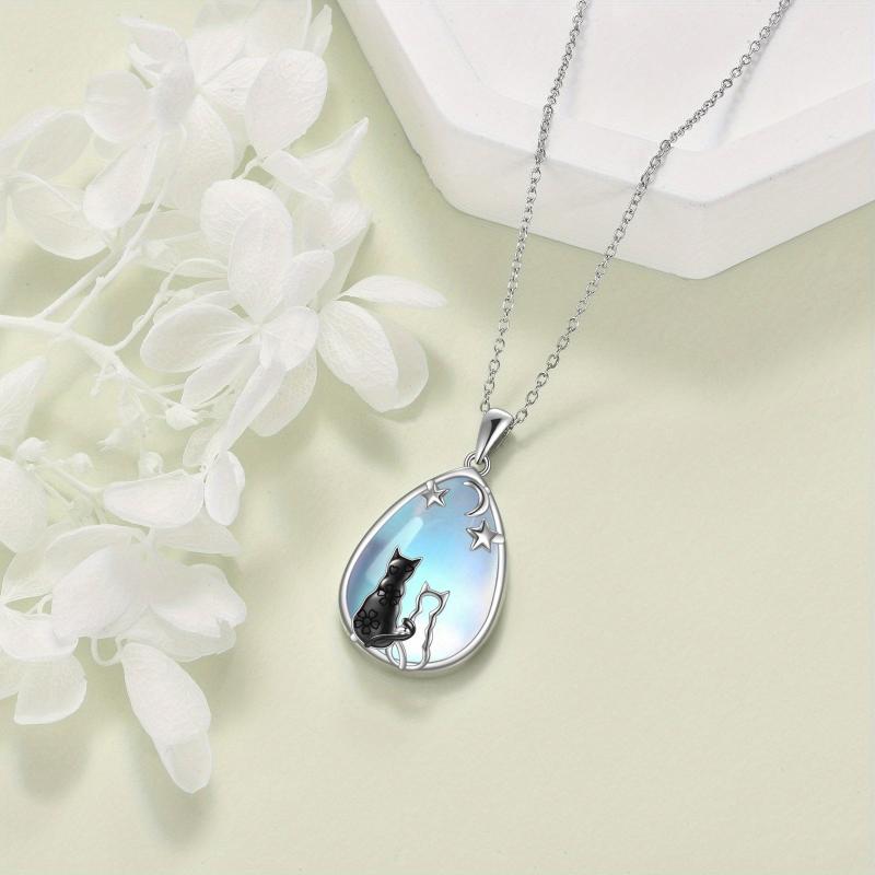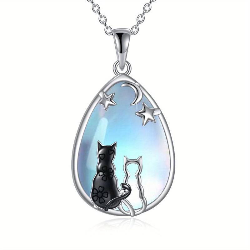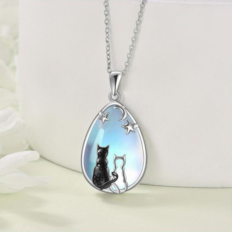 This beautiful necklace is a perfect gift for mothers on Christmas, birthdays, or any special occasion. Made with sterling silver and features a cat design with moonstone accents.