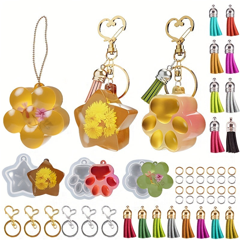 Create your own unique keychain with this high-quality silicone mold. This mold features a cute three-dimensional cat paw and pentagram design, perfect for crafting personalized accessories.