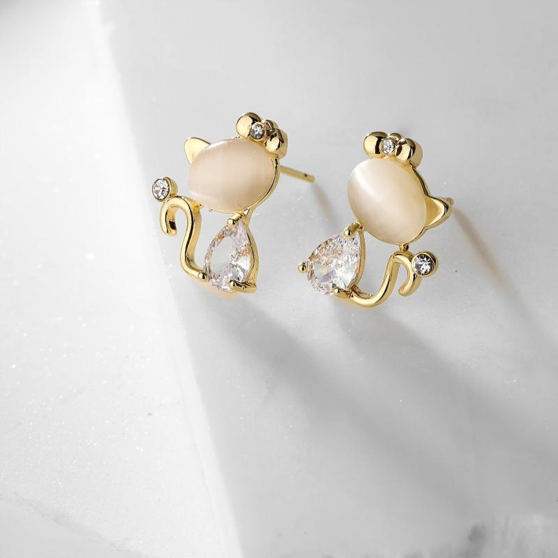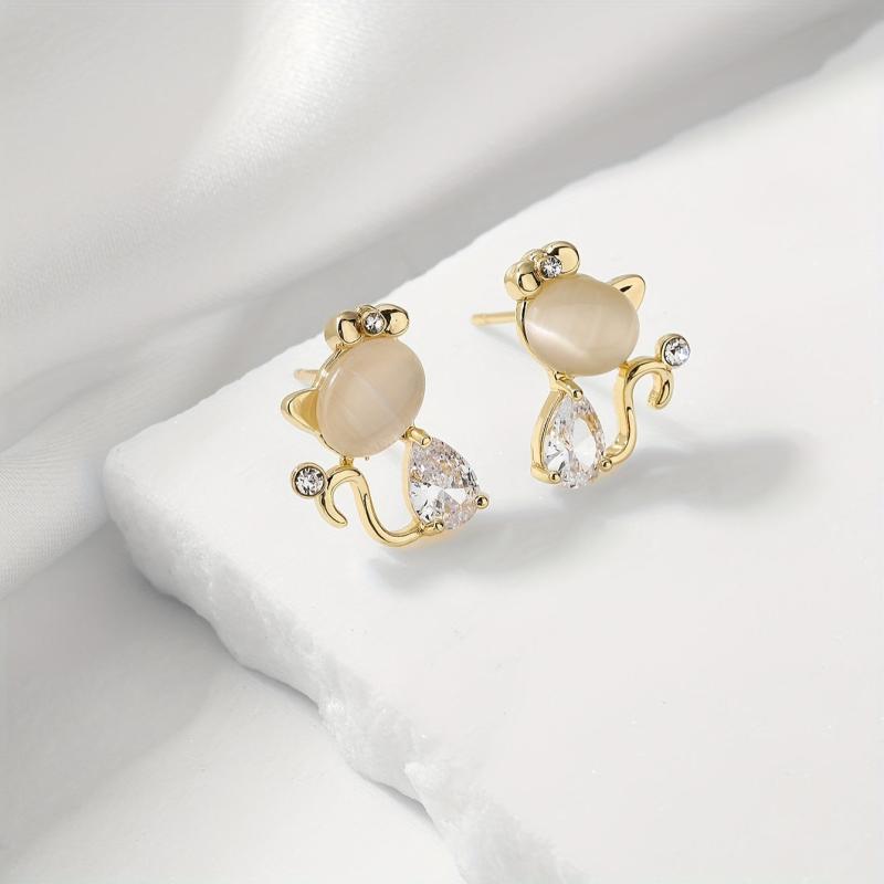 These cat stud earrings are crafted from copper and feature inlaid zirconia for added sparkle. Perfect for animal lovers and those who want a cute and stylish ear accessory.