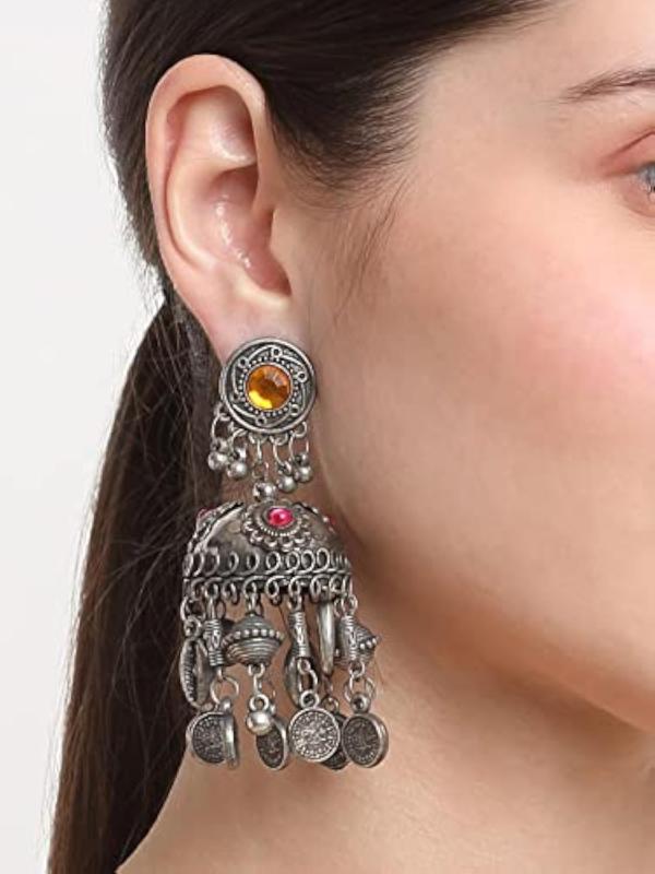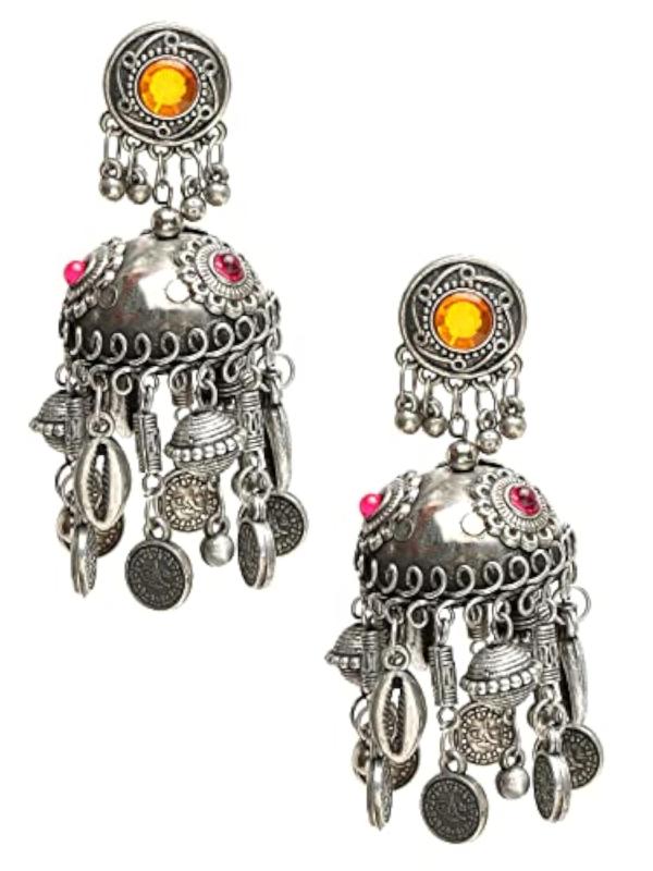 Make a stylish statement with these big size jhumki earrings. Crafted with oxidised silver, these earrings are perfect for any occasion.