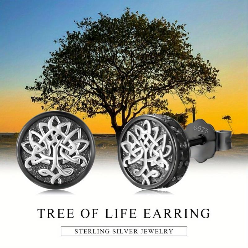 These Celtic earrings are crafted in pure silvery metal, featuring a Tree of Life design inspired by Nordic runes. Perfect as a birthday gift for both men and women.