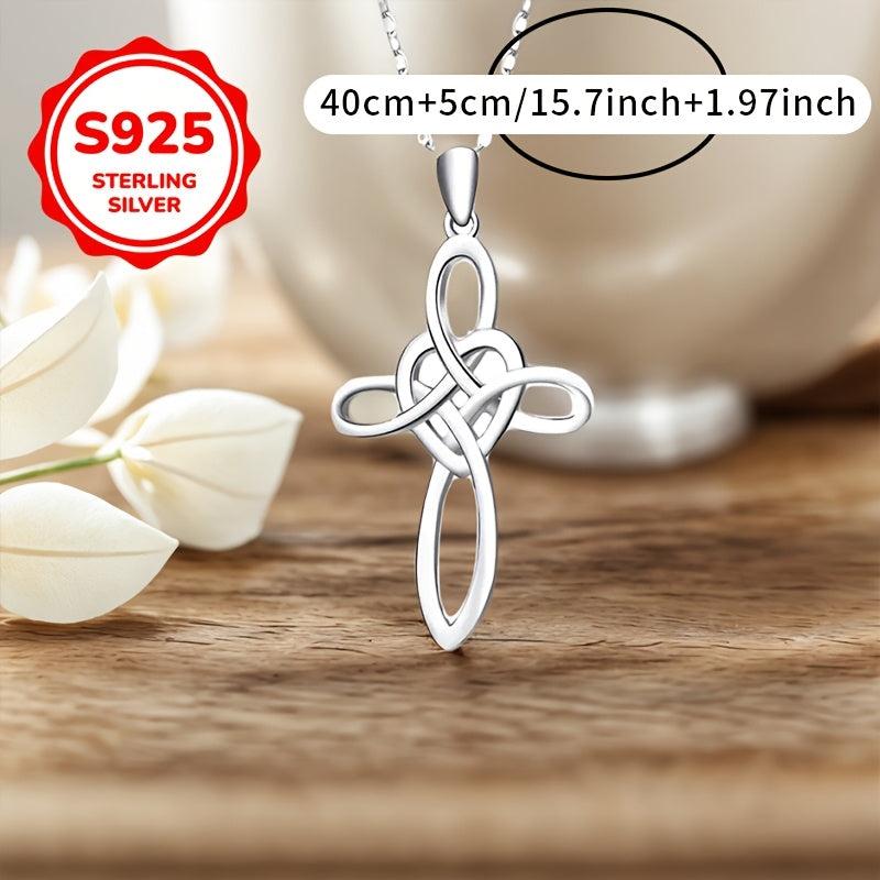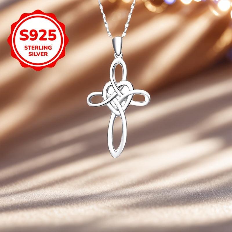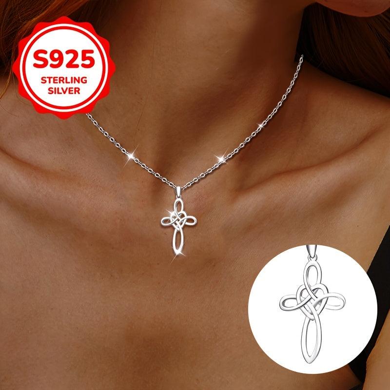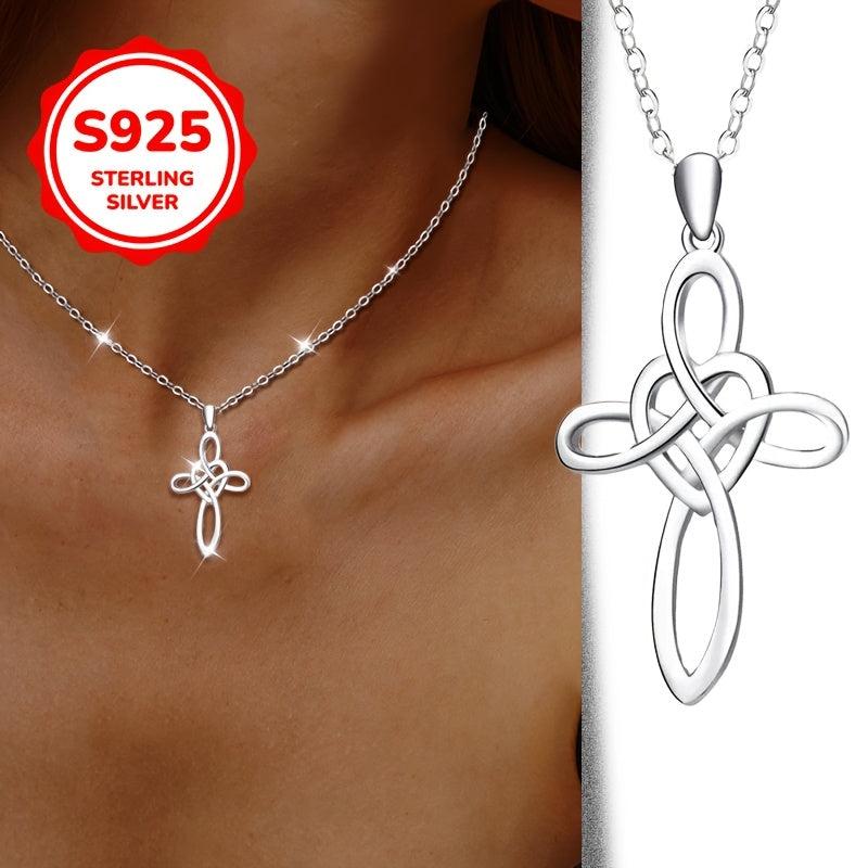 This beautiful pendant necklace features a Celtic knot and cross design in S925 sterling silver. It is low allergy and ideal for Mother's Day, Valentine's Day, birthdays, and more.