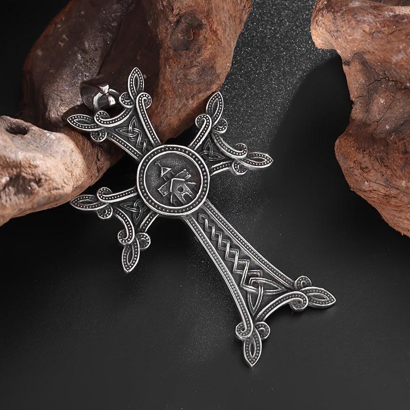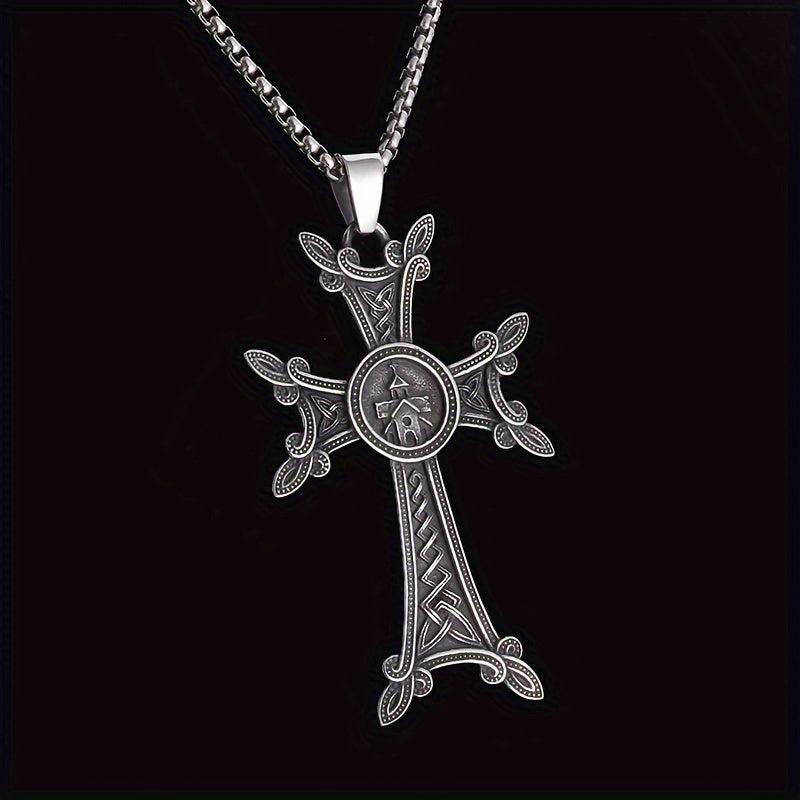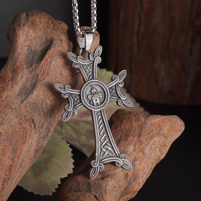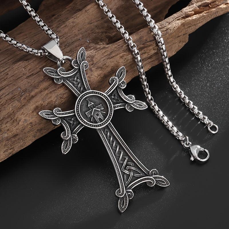This stylish unisex necklace features a Celtic knot cross design, made of high-quality zinc alloy. It is a perfect accessory for casual wear, parties, or as a gift for both men and women.
