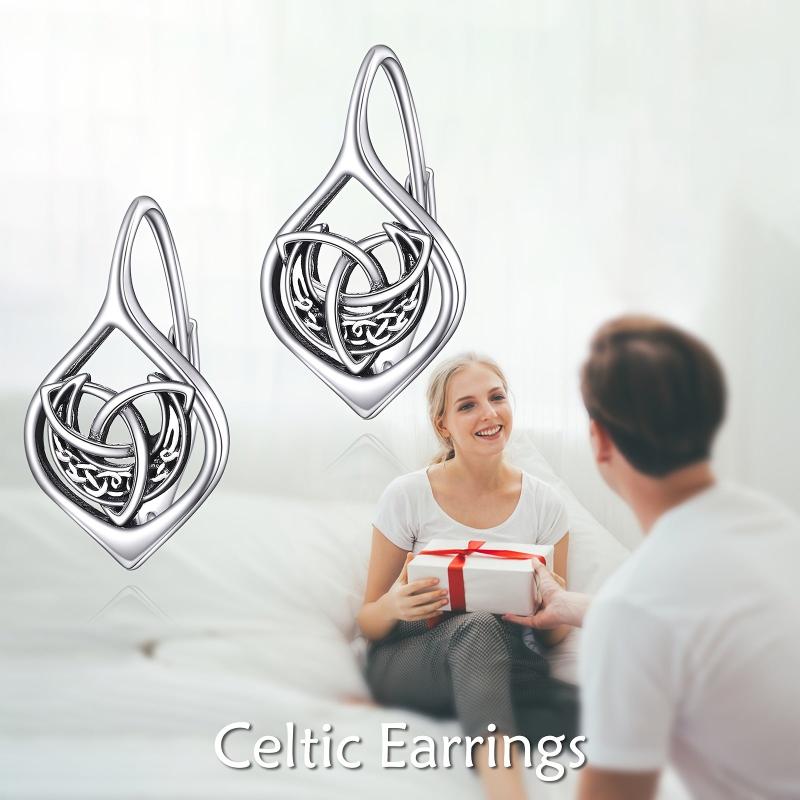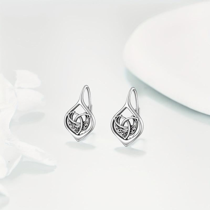 These Celtic Moon Earrings are crafted from 925 sterling silver and feature a crescent design with intricate Celtic knot triangle patterns. Perfect for adding a touch of Irish charm and good luck to your jewelry collection.