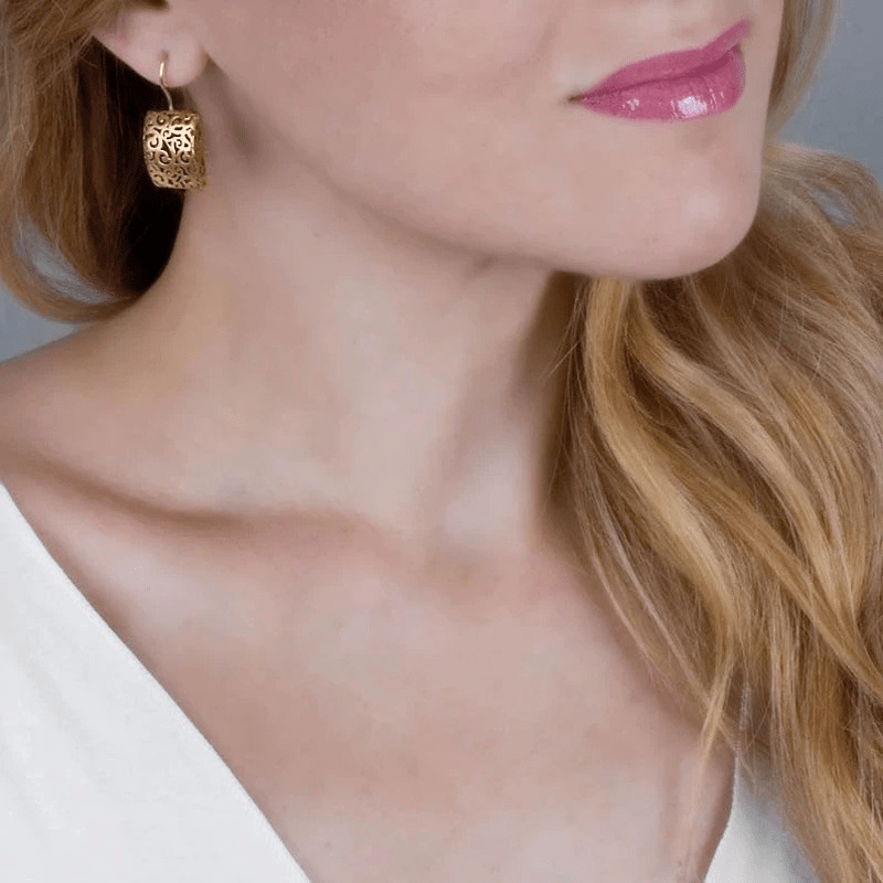 Elegant 14K plated earrings with Celtic design. Perfect for any occasion.