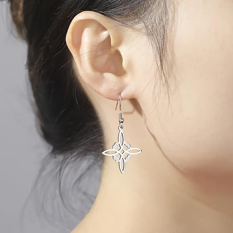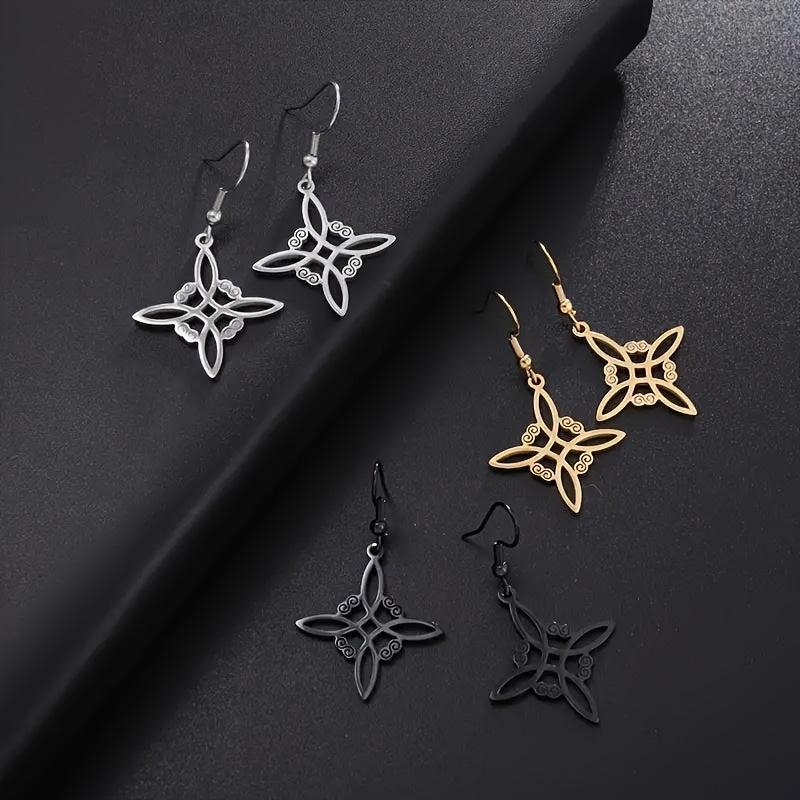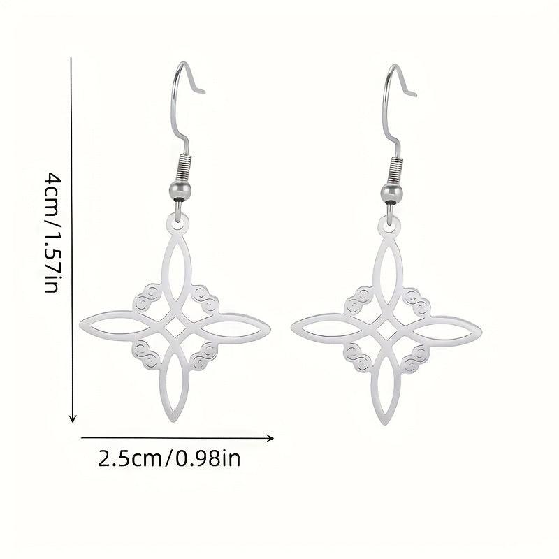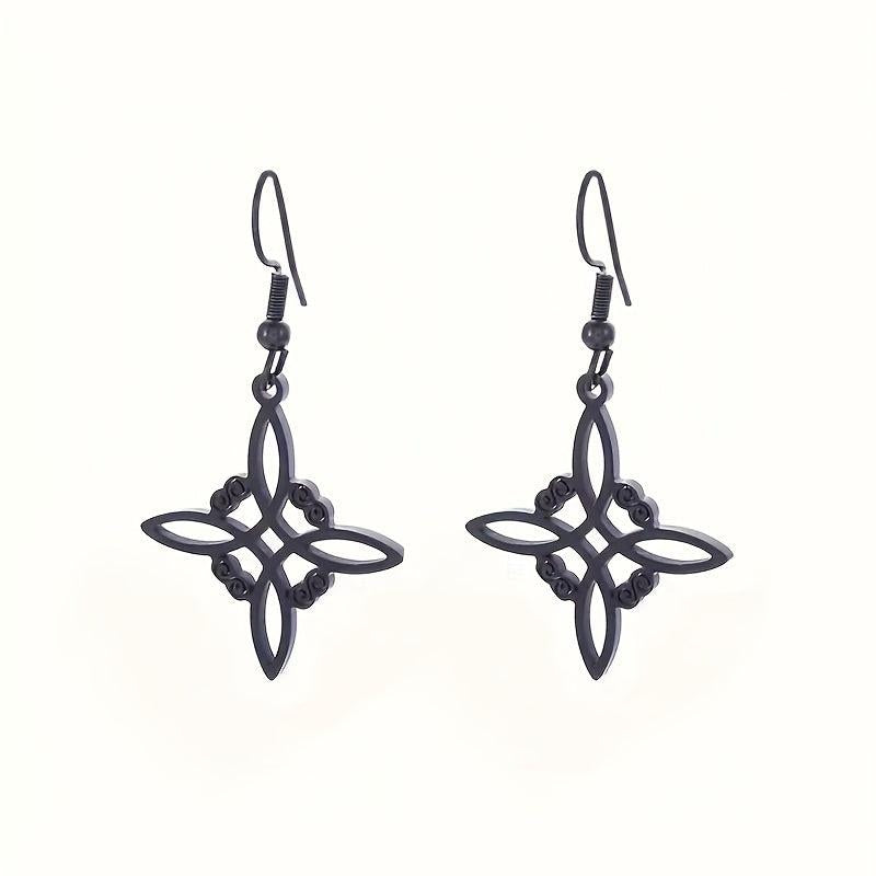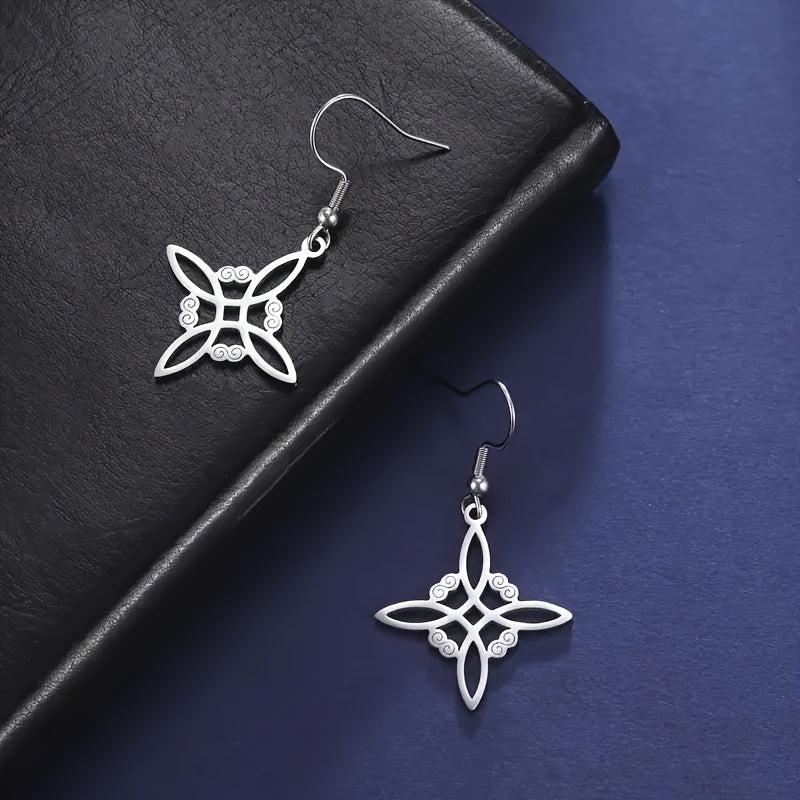 Bohemian style earrings for women featuring Celtic witch knot design. Made from stainless steel, these drop earrings are anti-allergy and stylish. A perfect addition to your jewelry collection.
