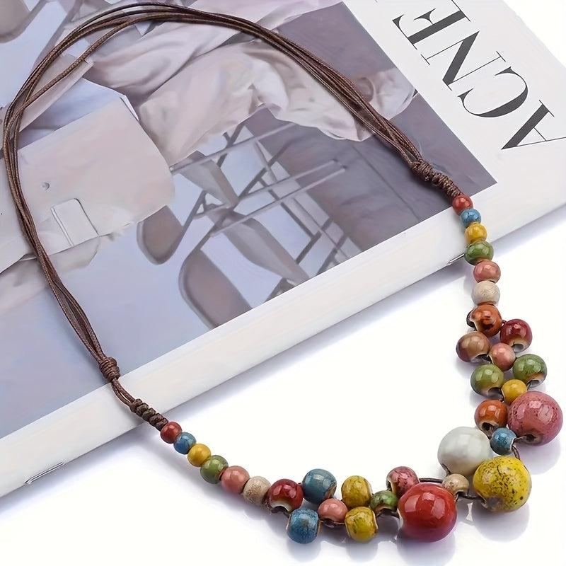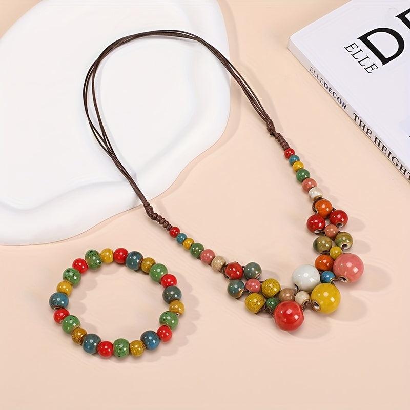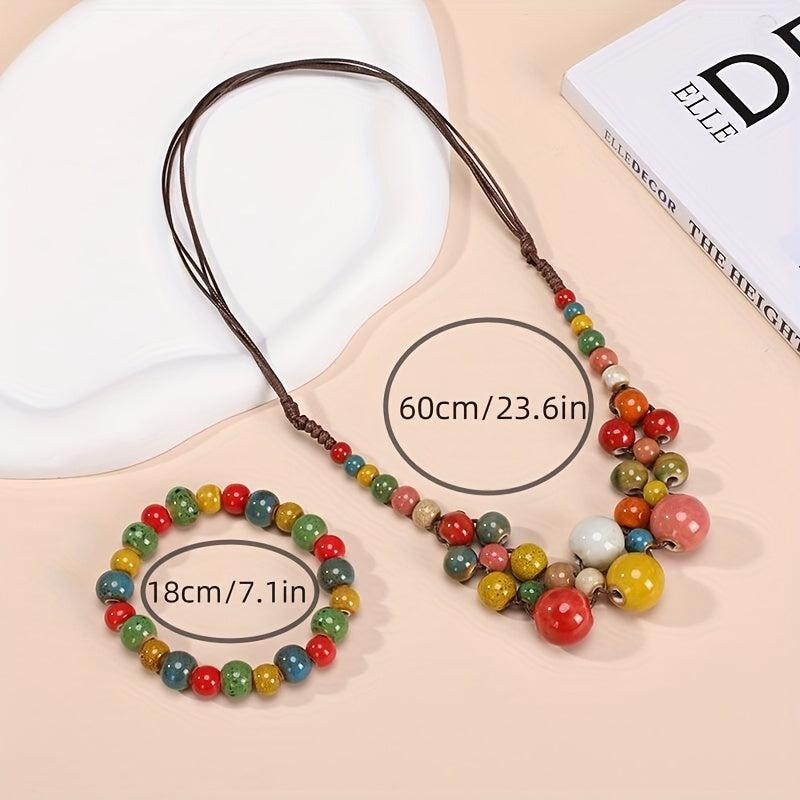 Elevate your style with this set of ceramic necklace and bracelet featuring dopamine bead accents. Perfect for women who appreciate unique accessories.