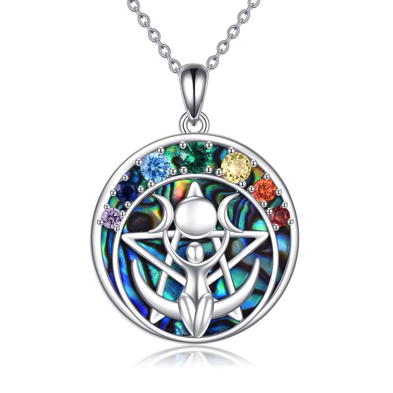 Chakra Triple Moon Goddess Pentacle Necklace