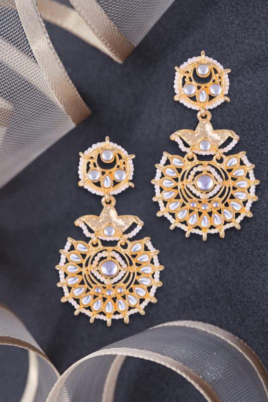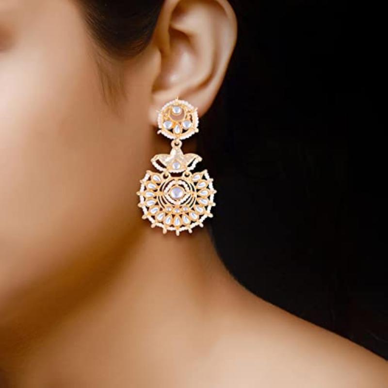 These exquisite Chandbali Kundans Earrings are perfect for adding a touch of elegance to any outfit. Ideal for weddings, festivals, and traditional occasions.