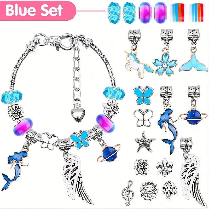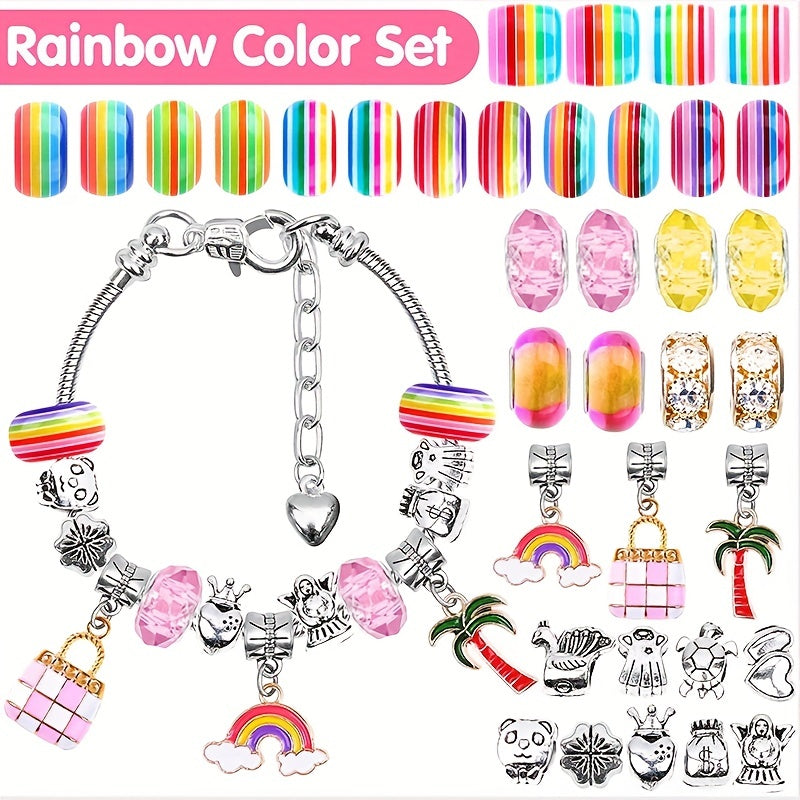 Create beautiful charm bracelets with this DIY craft kit that includes jewelry beads and snake chains. Perfect gift set for girls interested in jewelry making.