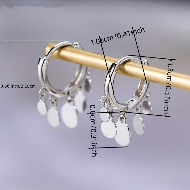 These elegant hoop earrings feature glossy multiple wafer round tassels that add a touch of charm to any outfit.