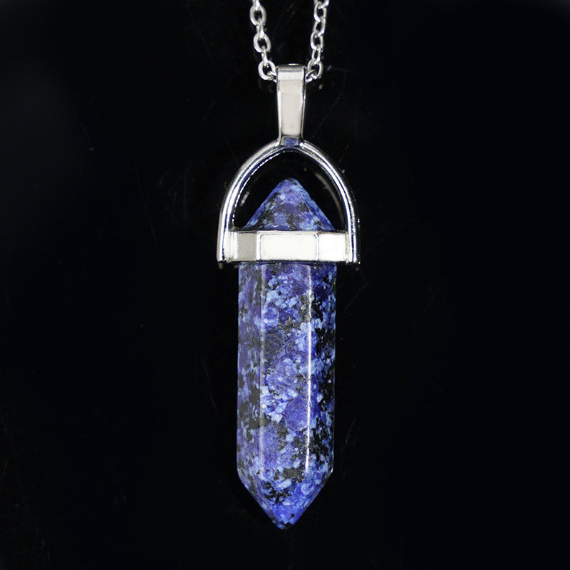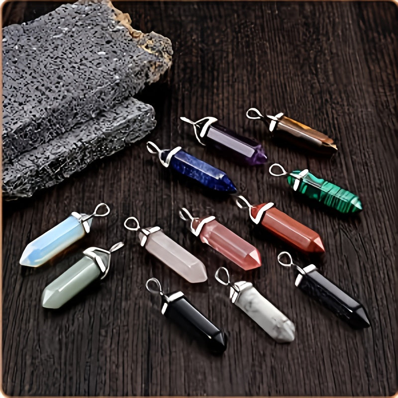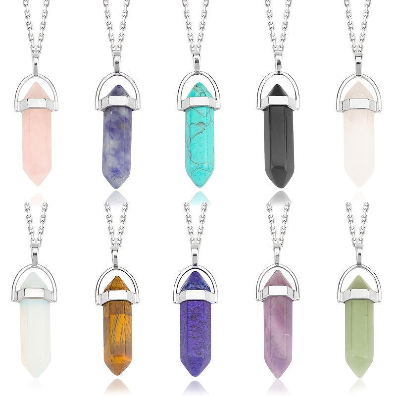This charm necklace features a natural crystal stone pendant for energy healing. It is a lucky protection jewelry piece that complements women's clothing and accessories.