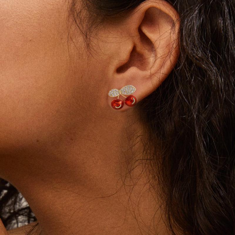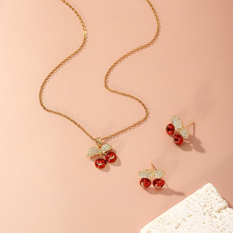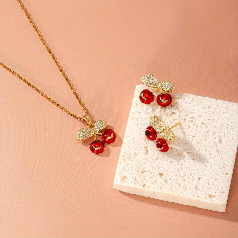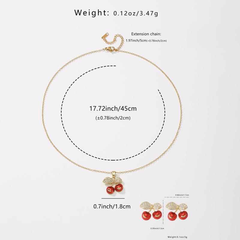 Complete your look with this stylish two-piece set featuring a cherry-themed design. Made of hypoallergenic stainless steel, it's perfect for daily wear or special occasions.