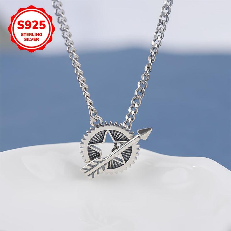 This elegant necklace set features a five-pointed star round plate pendant, as well as a bow and arrow shield pendant. Made of S925 pure silver, it is hypoallergenic and perfect for sensitive skin. A charming and high-end gift for Christmas.