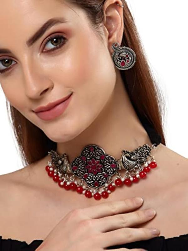 Elegant and stylish oxidised necklace set designed for women to enhance their look.