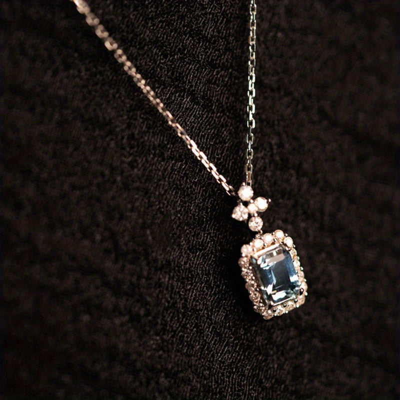 Elevate your outfit with this elegant perfume bottle necklace featuring a sea zircon pendant. The French advanced design adds a touch of luxury and sophistication to your look.