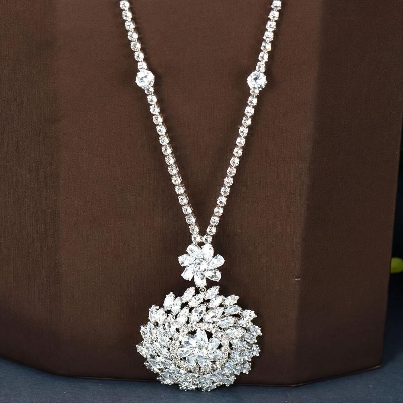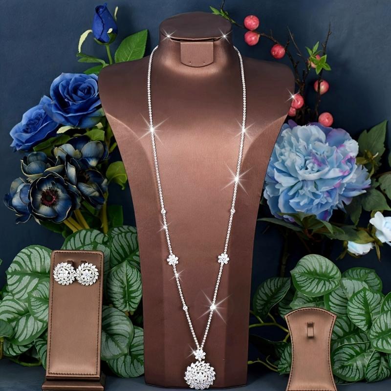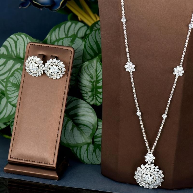 Complete your elegant look with this set featuring minimalist round cubic zirconia inlaid necklace and earrings. Perfect for banquets and formal events.