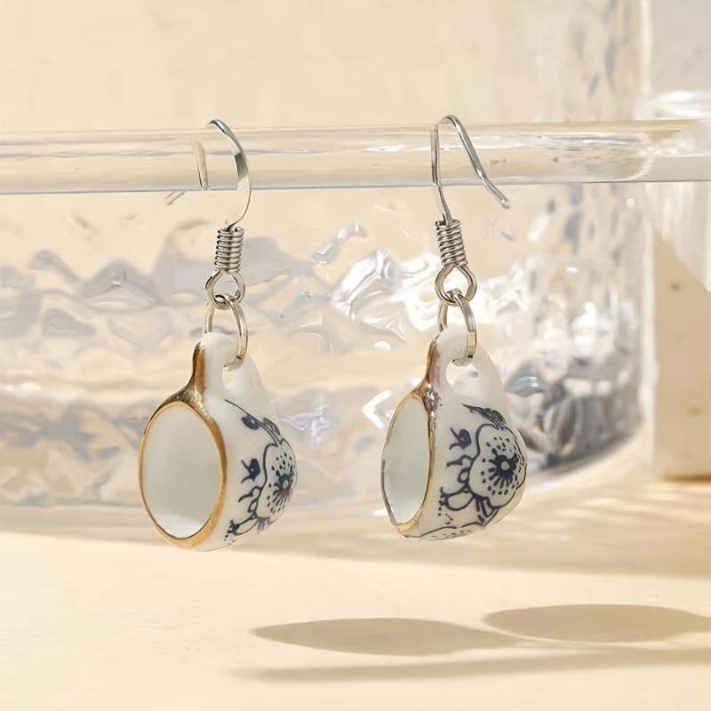 These vintage Chinese ceramic tea cup earrings are the perfect gift for her. They are suitable for daily wear as well as special occasions like parties. Celebrate your love for tea and unique accessories with these charming earrings.