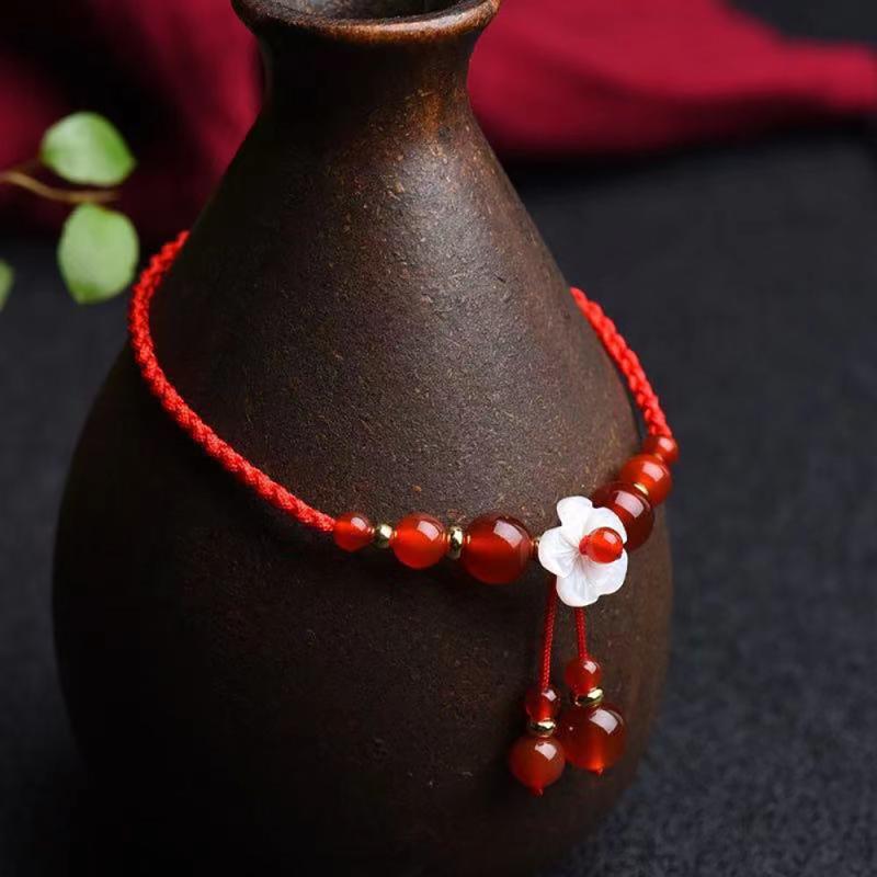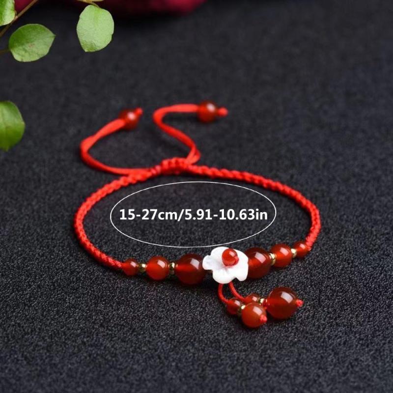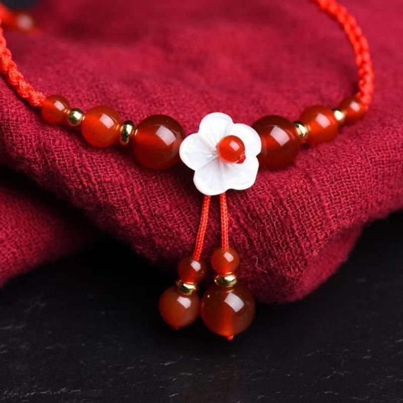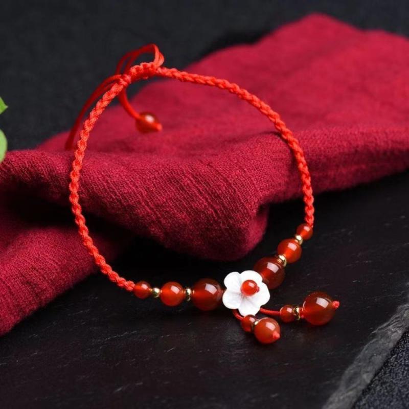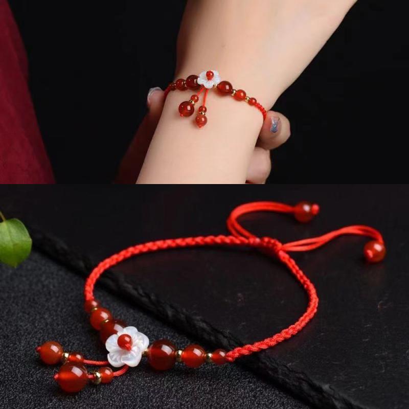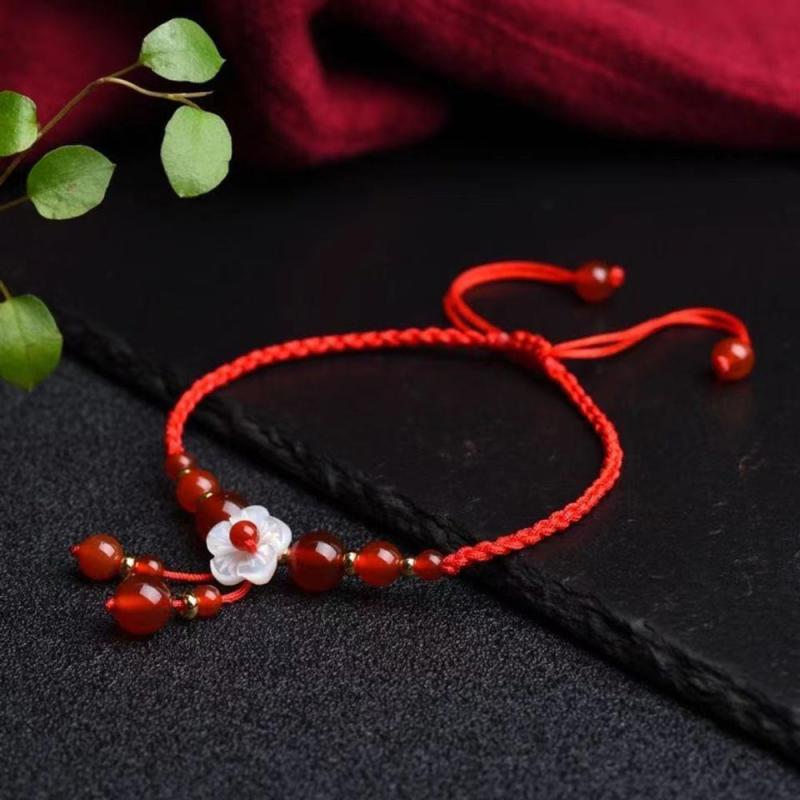 This beautiful bracelet features a red agate pendant woven with red rope in a traditional Chinese style design. It is a versatile accessory that adds a touch of elegance to any outfit.