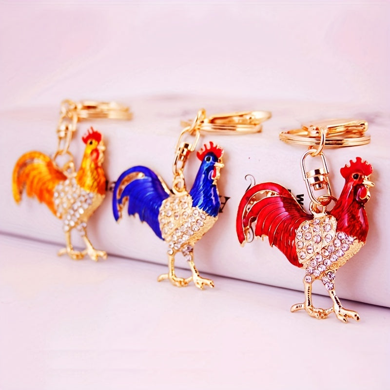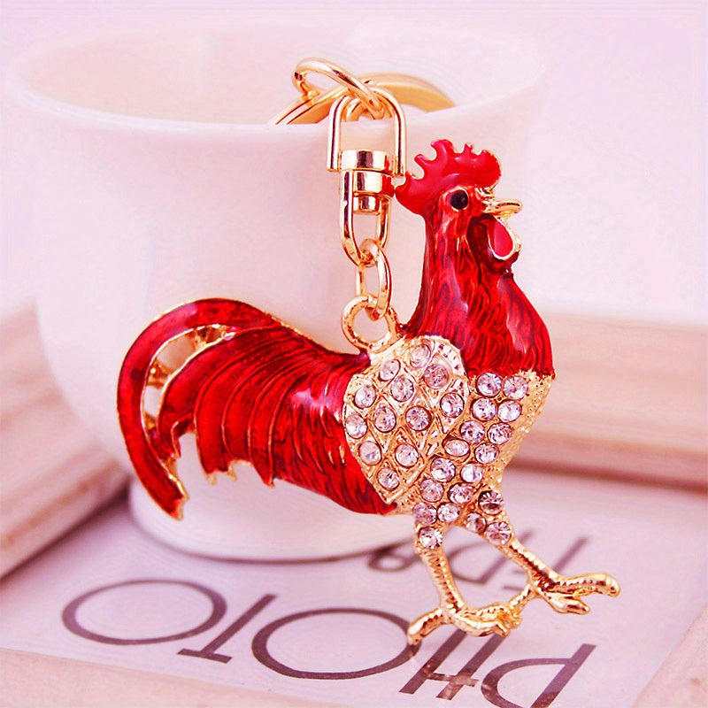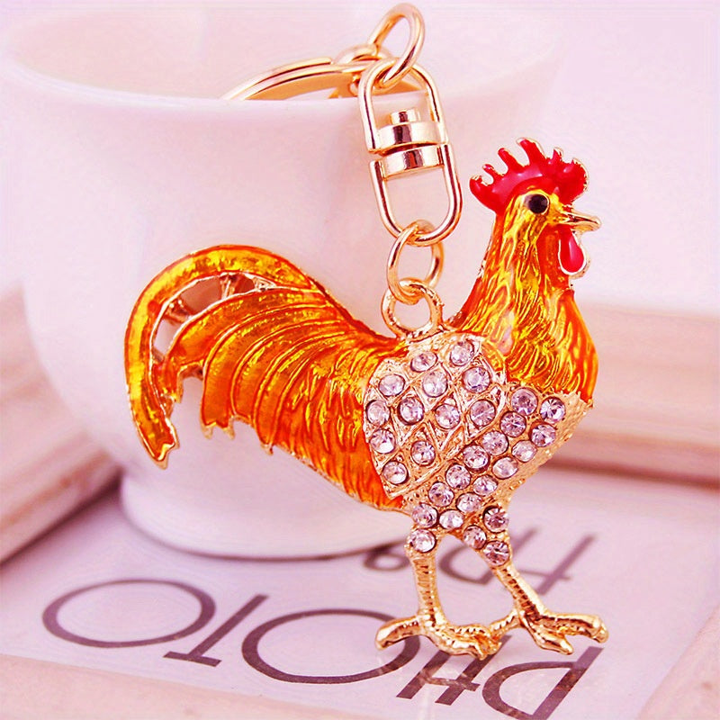 This Chinese style key chain features a creative drop oil design with a zodiac cock. It can be used as a car key chain or bag accessory. Makes a perfect gift for someone special.