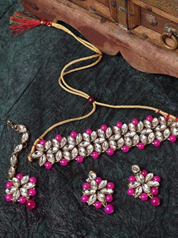 Elegant choker set with traditional Kundan design. Perfect for special occasions.