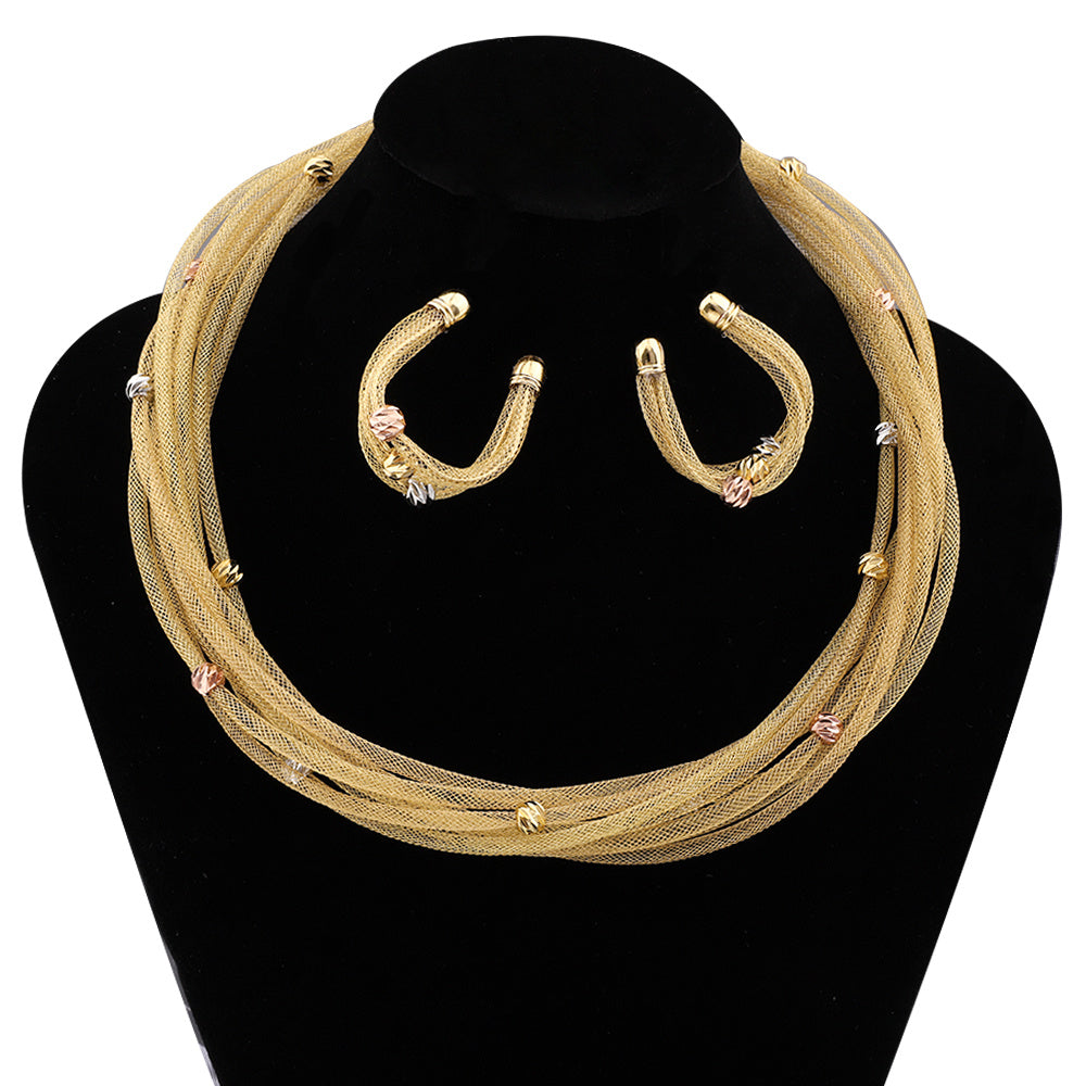 Elegant jewelry set featuring a choker necklace and matching earrings. Perfect accessory to celebrate your special day.