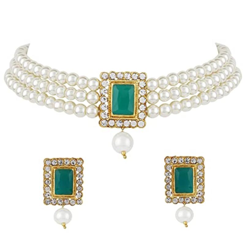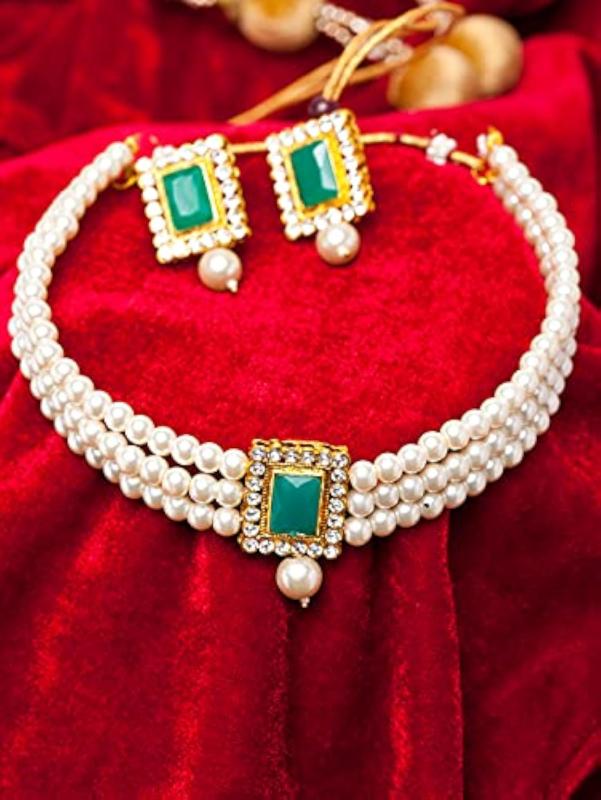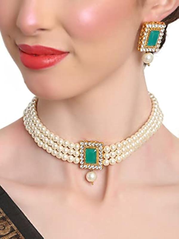 Elegant choker necklace set with traditional pearl design. Perfect for special occasions.