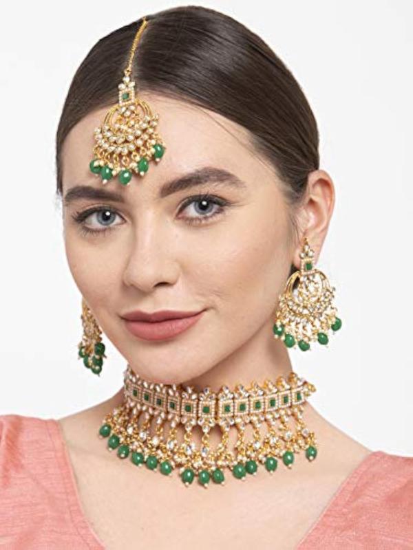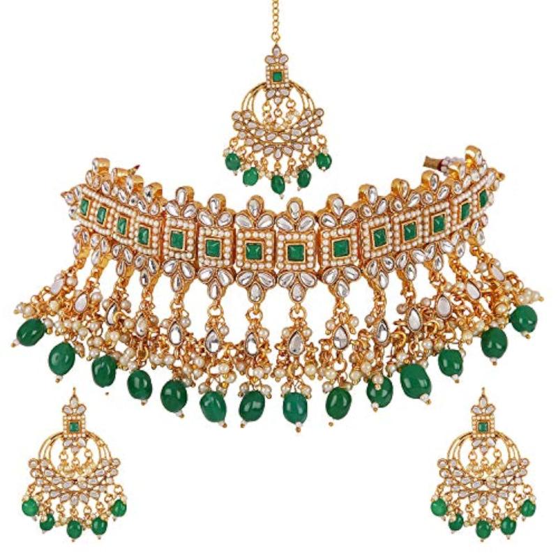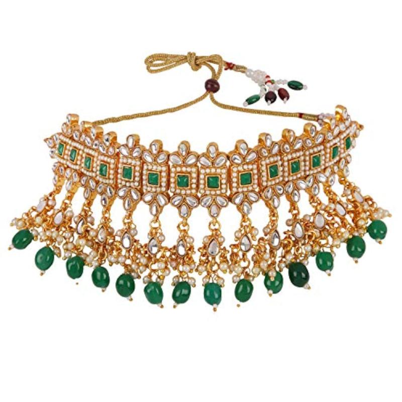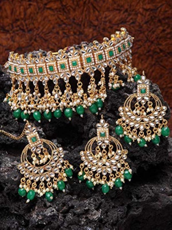 Elegant choker necklace set with pearls and kundan, perfect for traditional occasions.