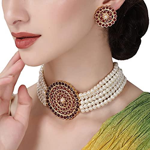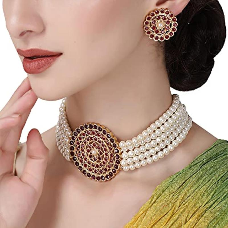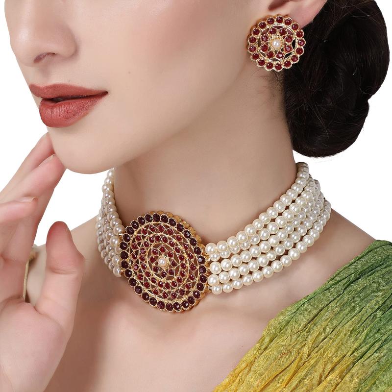 Elevate your style with this stunning choker necklace set featuring fancy pearls. Perfect for traditional occasions.