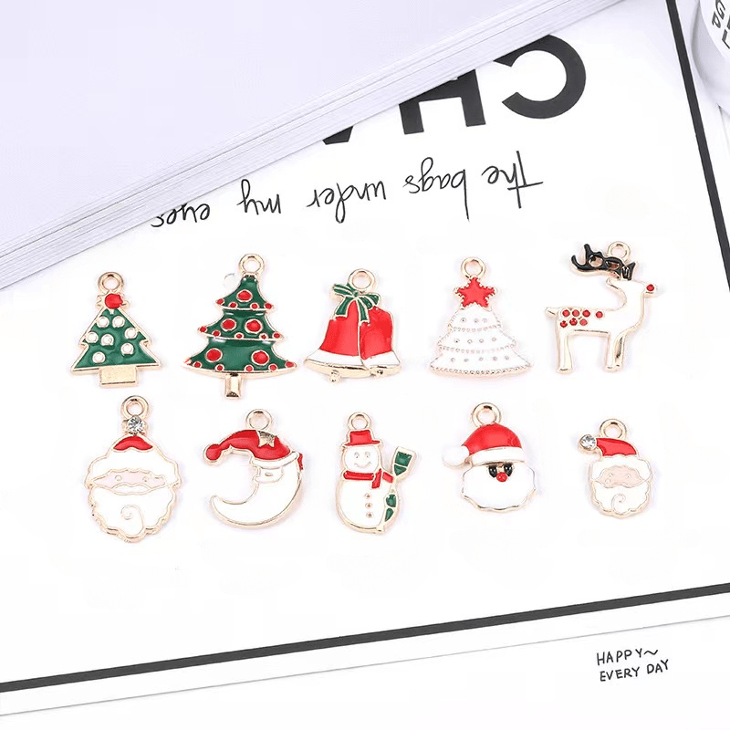 Add a touch of festive charm to your Christmas tree with this set of drop oil Christmas ornaments. Each ornament features a unique design of reindeer, Santa Claus, snowflakes, and stockings. Made with high-quality alloy materials, these ornaments are both durable and elegant.
