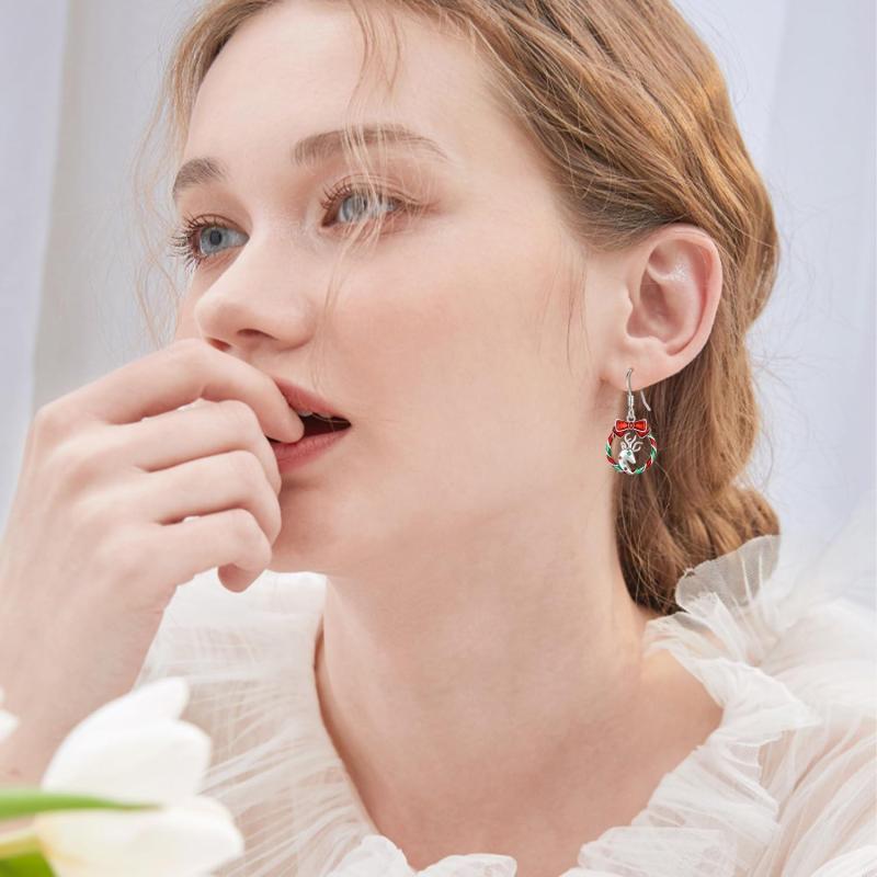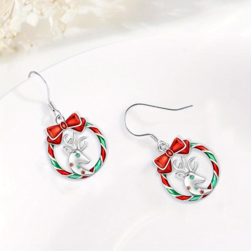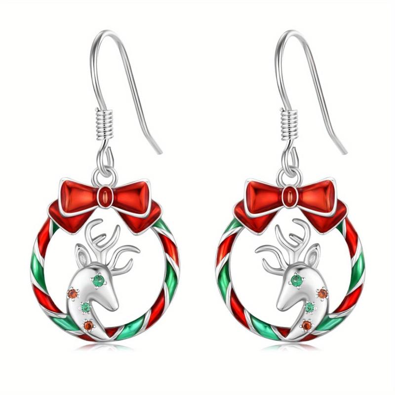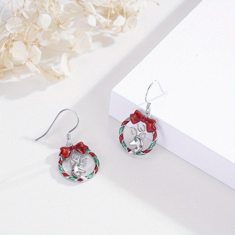 Add a festive touch to your outfit with these charming Christmas Reindeer Earrings. Crafted from 925 sterling silver, these dainty earrings feature a cute deer design with a bow wreath. Perfect for the holiday season!