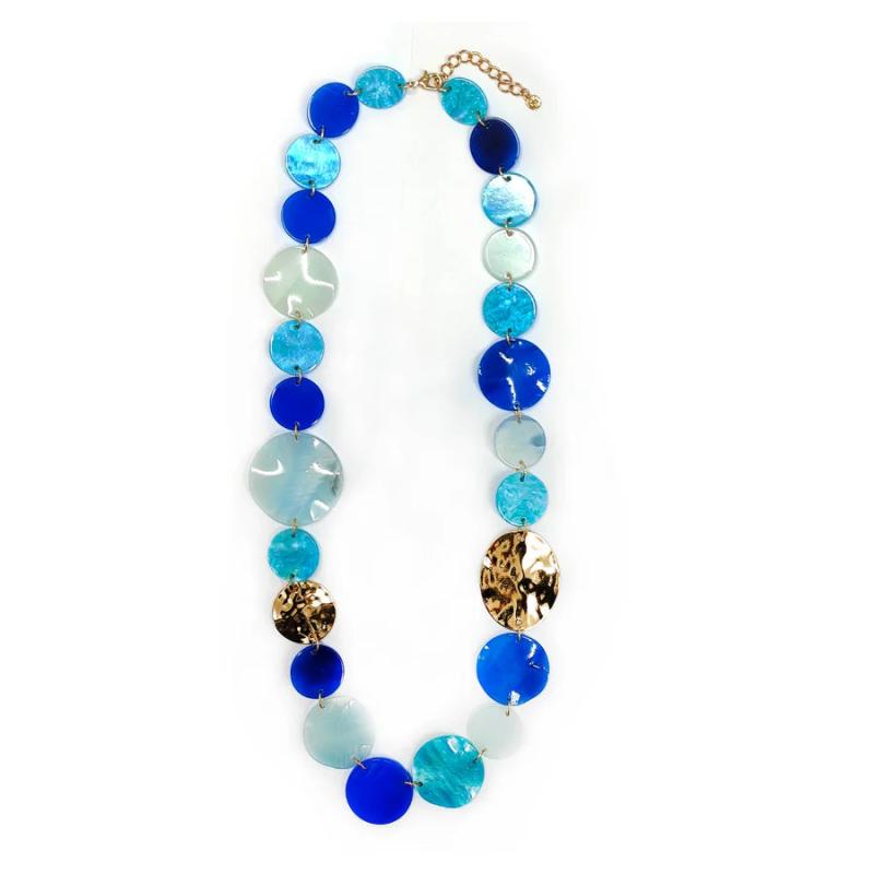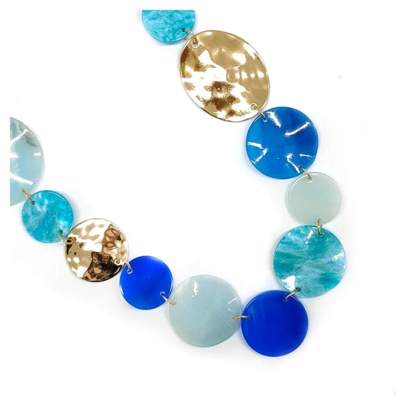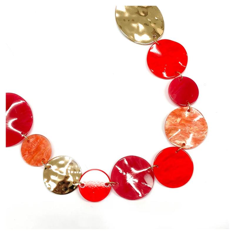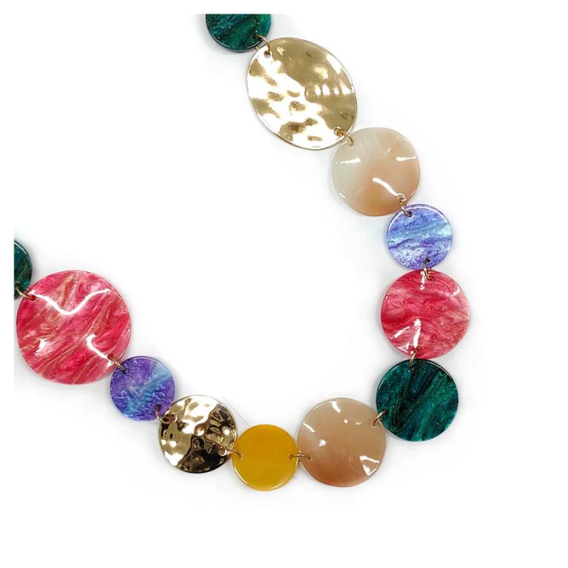 Add a pop of color to your outfit with this chunky acrylic circle necklace. It features a chain of circles in vibrant colors, making it a bold and stylish accessory.