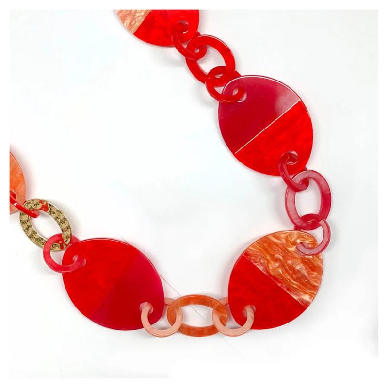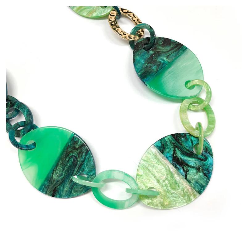 Elevate your style with this chunky and bold long necklace featuring a thick chain, acrylic round beads, and striking colors.