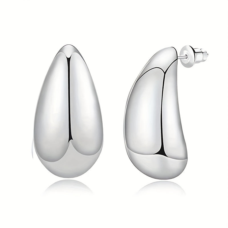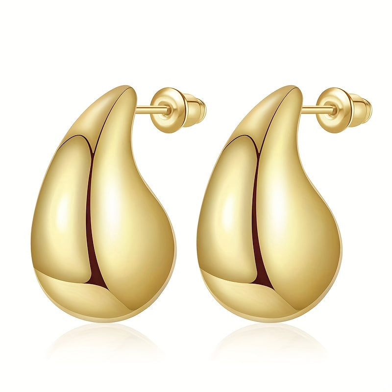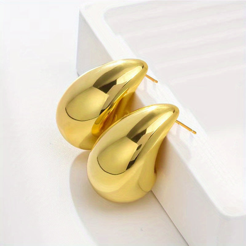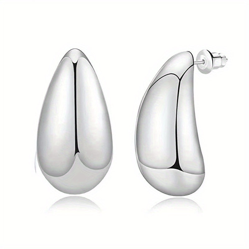 These chunky plated stud earrings feature a hypoallergenic design with an abstract pattern. They are a stylish and comfortable accessory for any occasion.