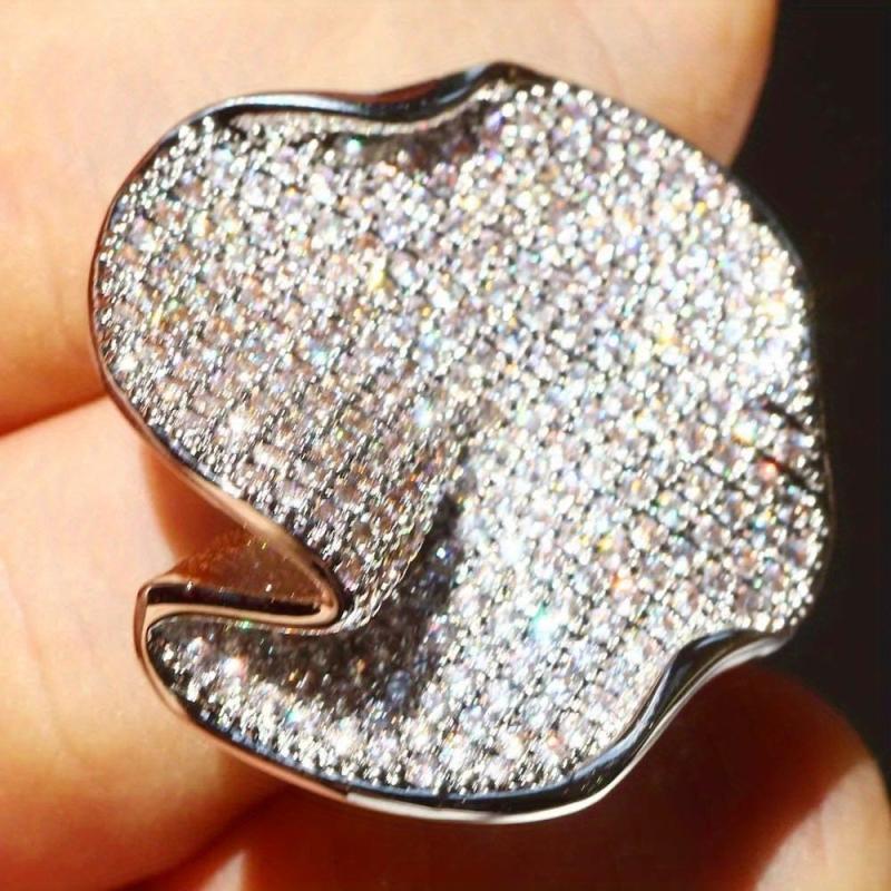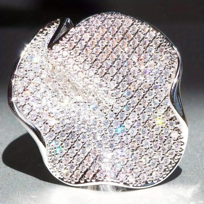 Make a bold statement with this funky and unique cocktail ring. The irregular circle design with inlaid zirconia stones is perfect for parties, music festivals, and hippie vibes.