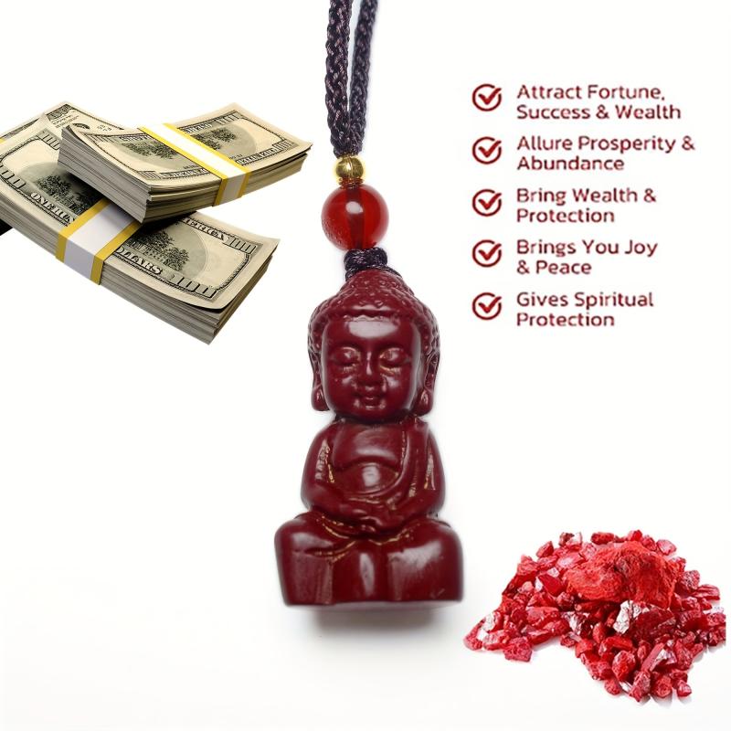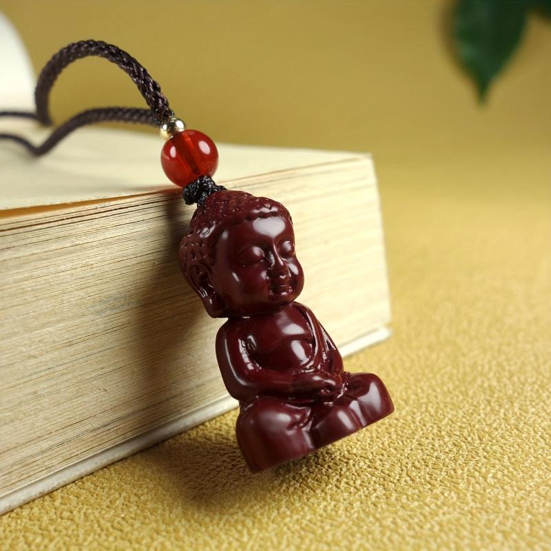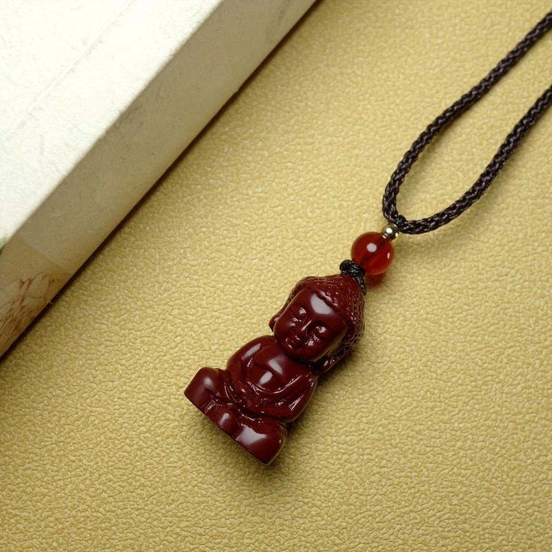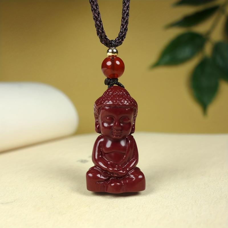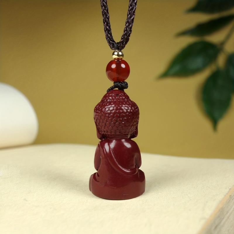 This unisex necklace features a Cinnabar Baby Tathagata character for peace and protection.