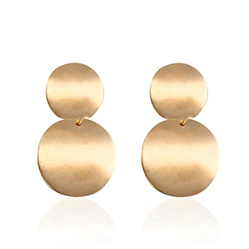 Elevate your style with these unique and brilliant circular metal drop earrings. Perfect for adding a touch of glam to any outfit.