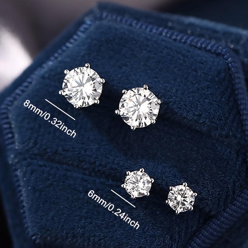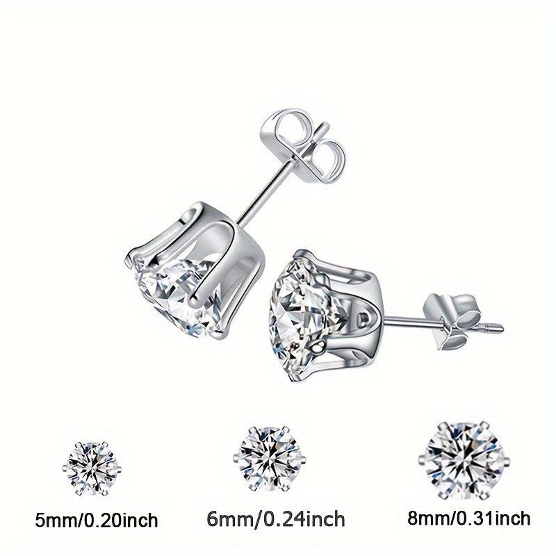 Elegant and timeless, these stainless steel earrings feature synthetic cubic zirconia stones in a classic six-prong setting. Perfect for weddings, Valentine's Day, and daily wear.