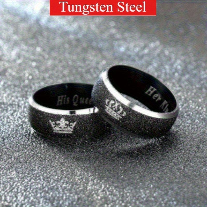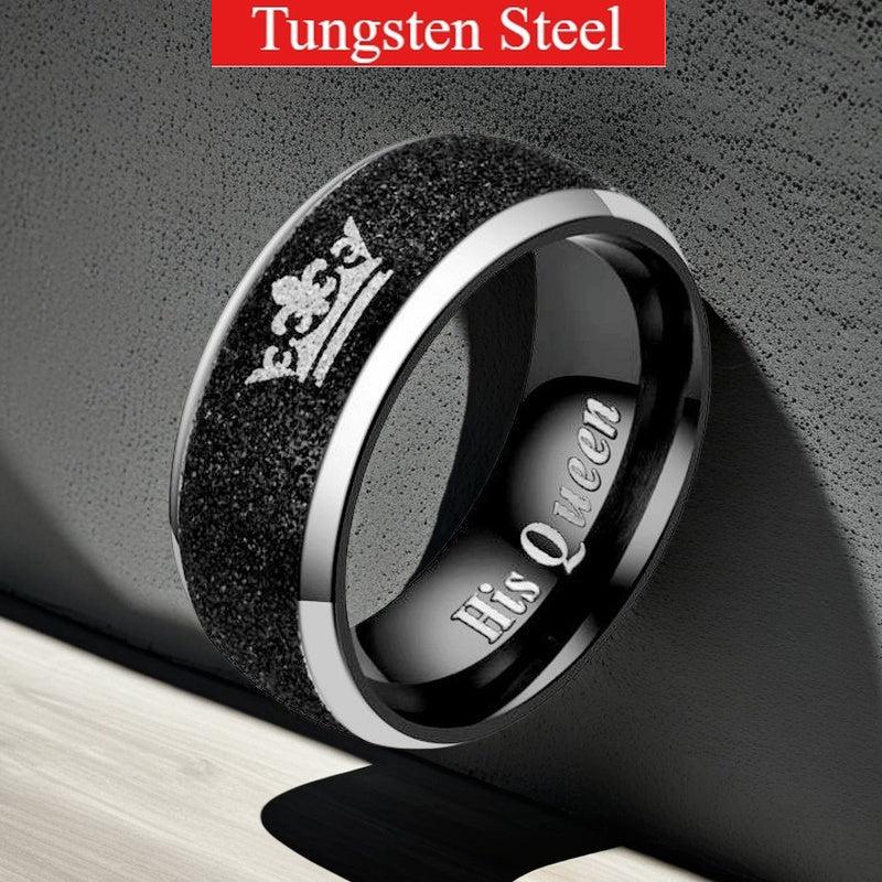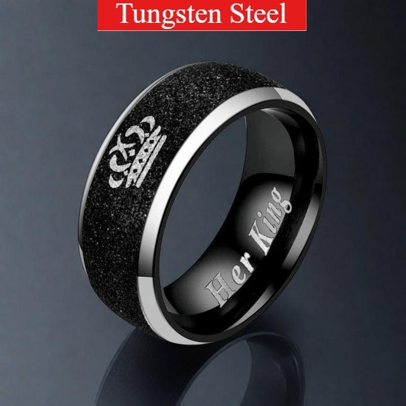 These rings are a perfect couple's gift, plated with eternal love and engraved with the words 'Her King' and 'His Queen'. Made of high-quality tungsten steel.