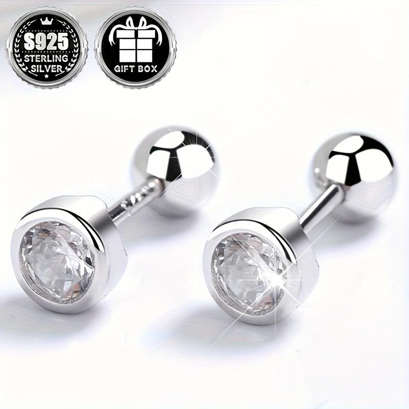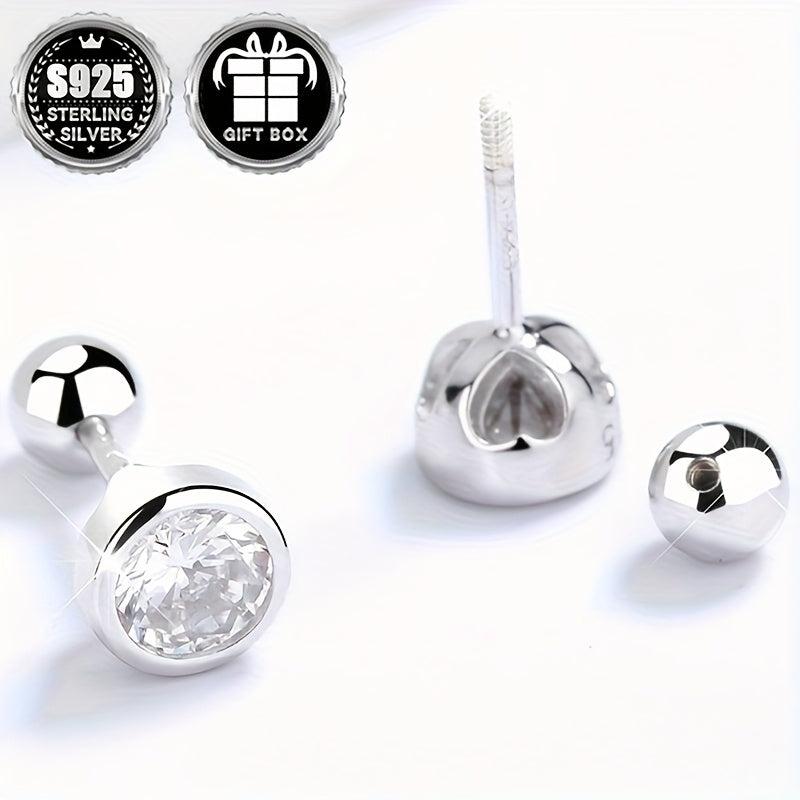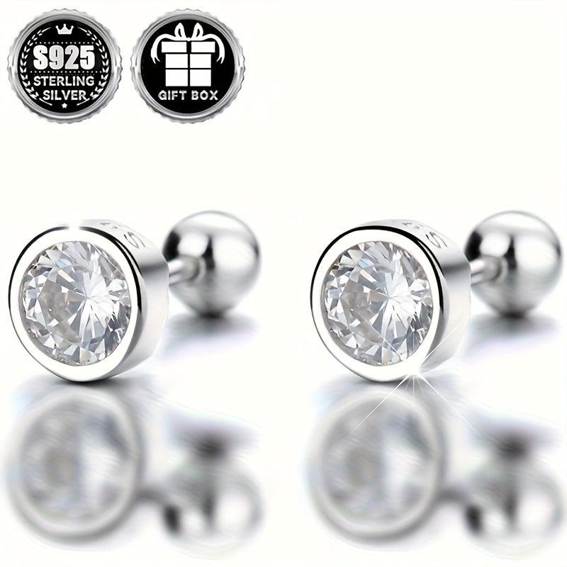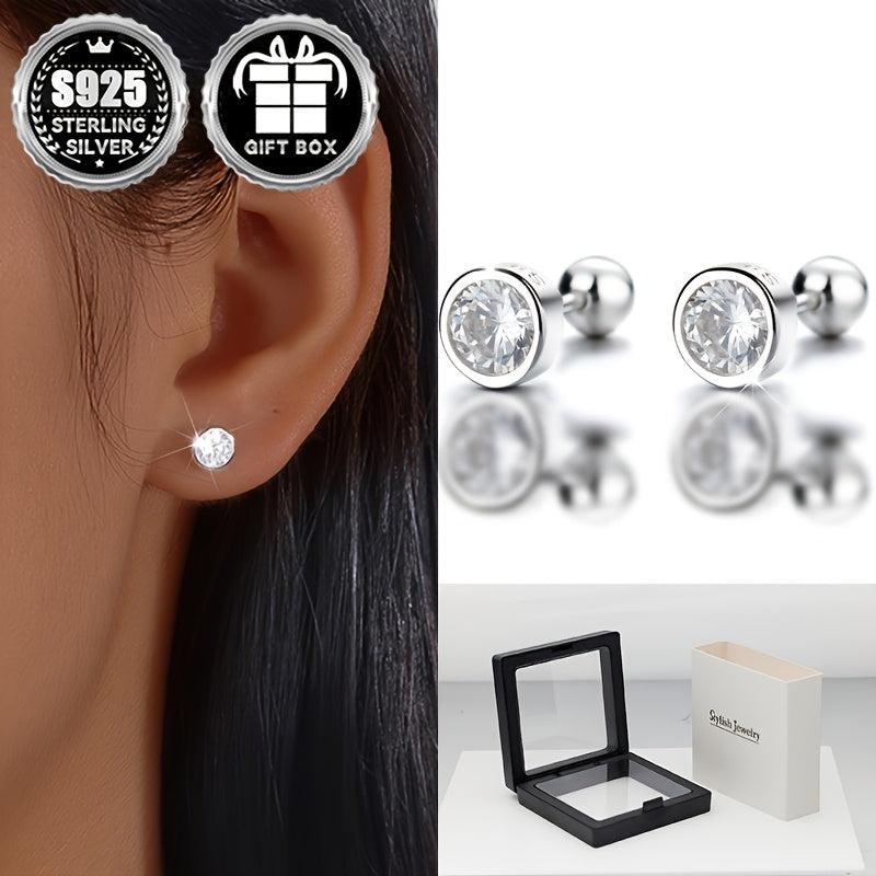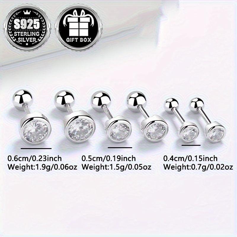Classic Geometric Round Zirconia Stud Earrings 925 Silver No Plating