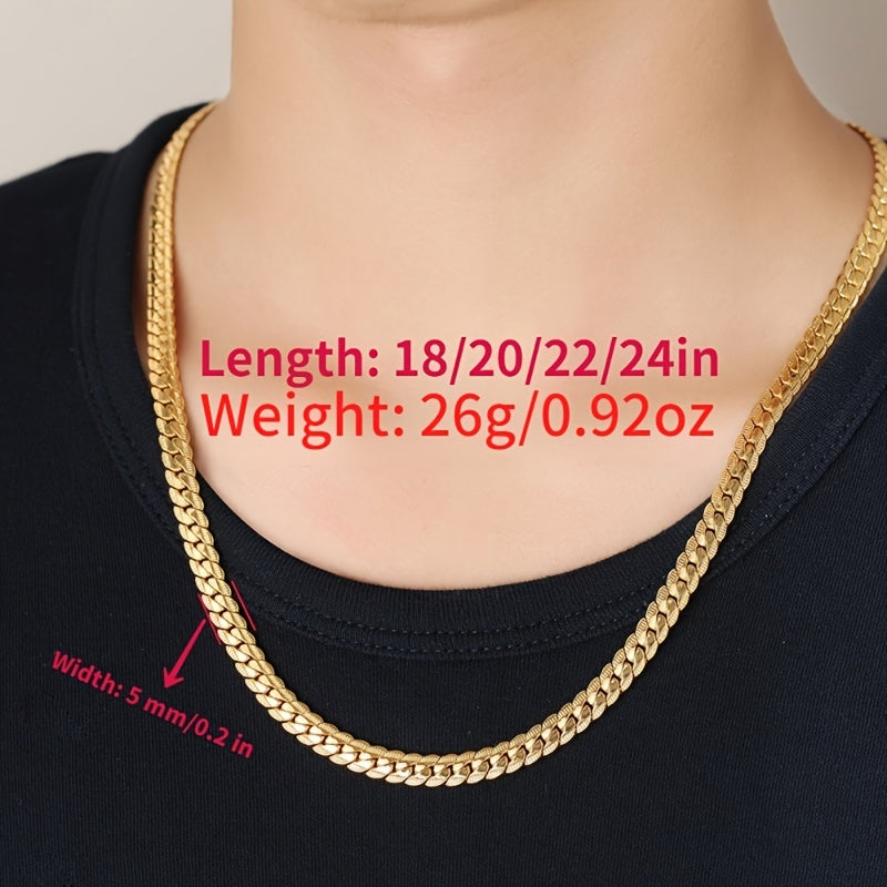 This classic whip necklace is a stylish choice for men. The 5mm wide chain is golden plated with silver accents, adding a touch of elegance to any outfit. Perfect for birthday parties or special occasions.