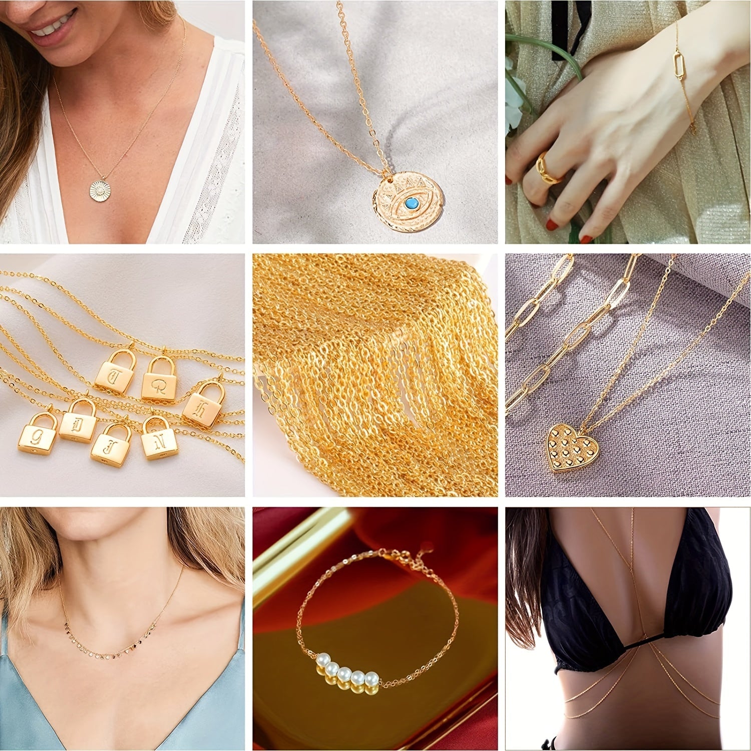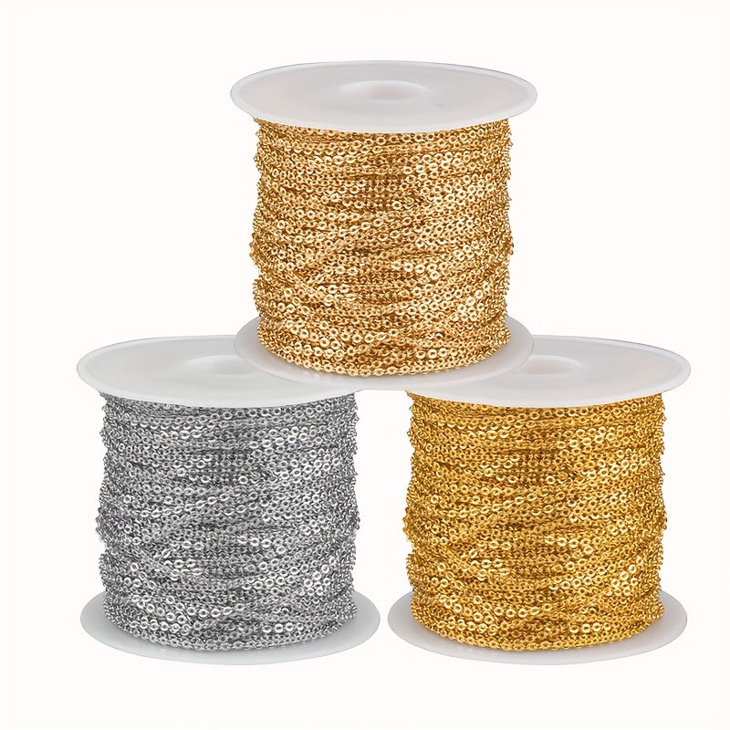 This set includes a classic golden and silver metal chain suitable for creating DIY jewelry accessories like necklaces and bracelets.