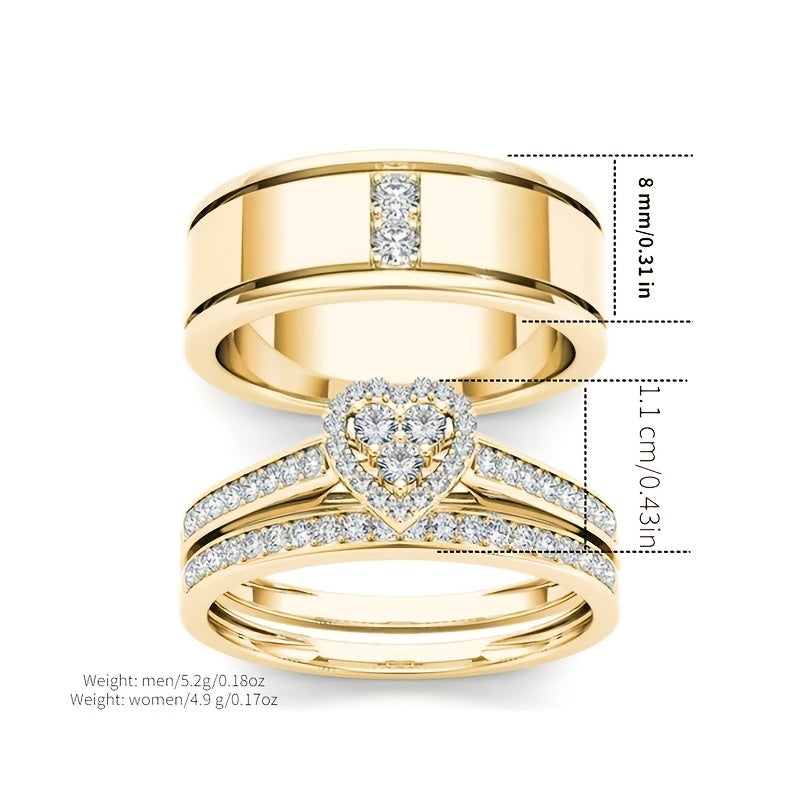 This timeless and elegant engagement ring set is perfect for couples who want to symbolize their love and commitment. The set includes a beautiful ring for him and a matching ring for her.