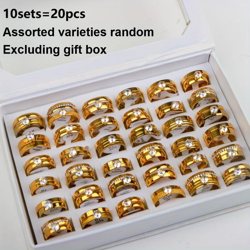 This set includes 20 pieces of classic and romantic stainless steel rings with synthetic zirconia. Perfect for couples as wedding rings or as a symbol of eternal love.