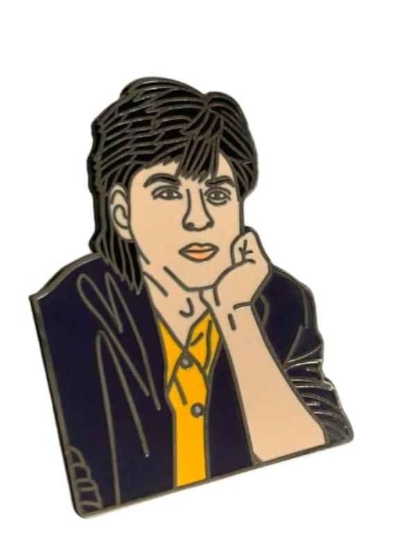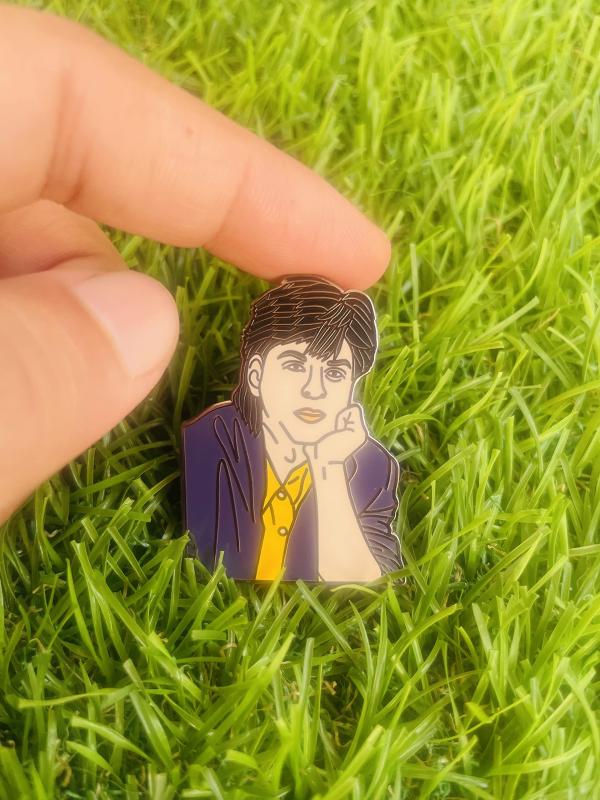Show your love for Shahrukh Khan with this classic enamel pin featuring his iconic pose.