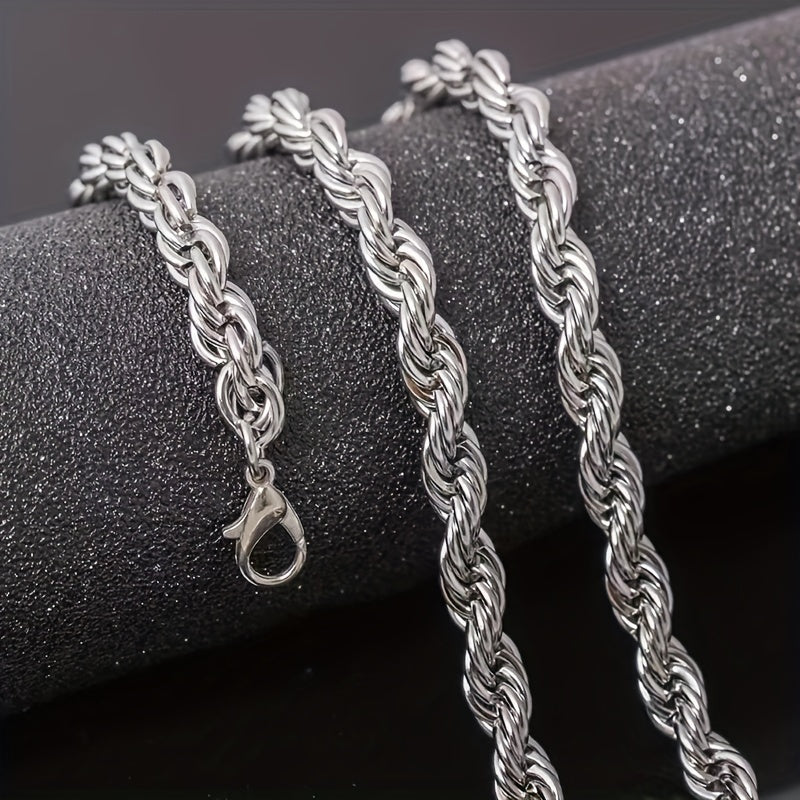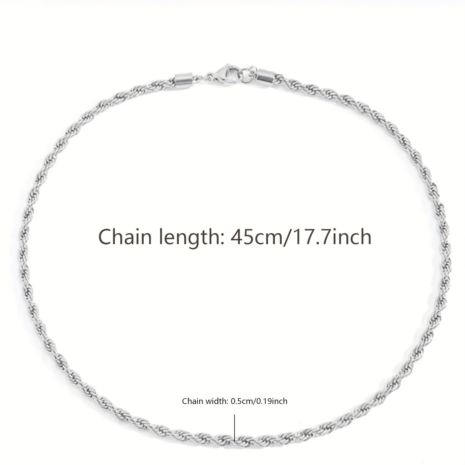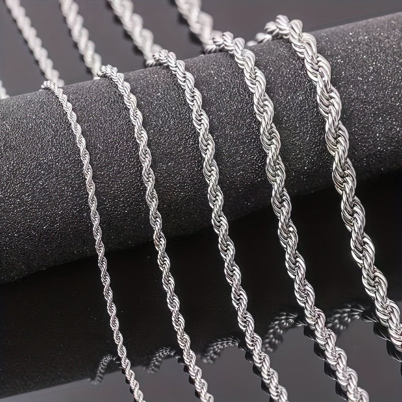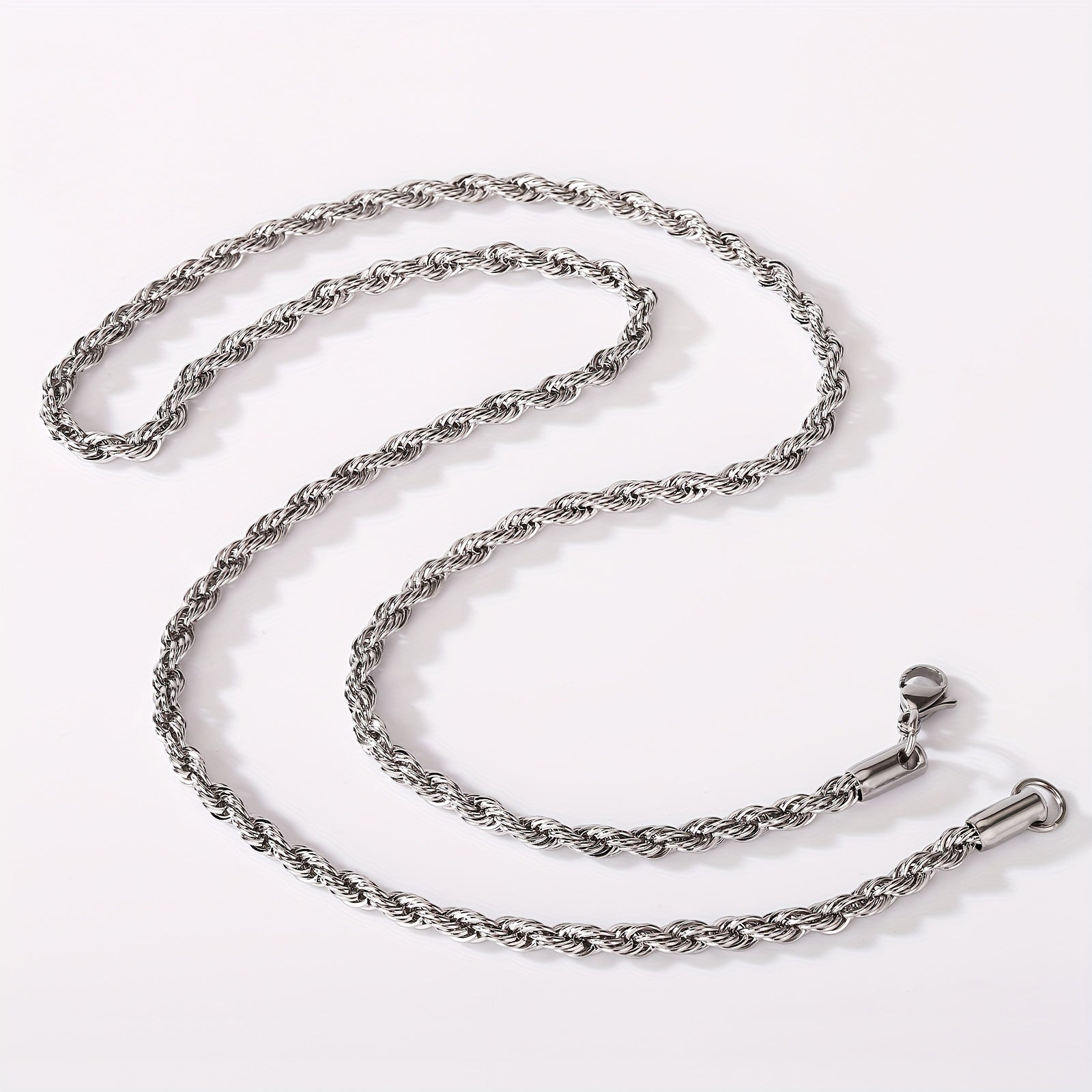 This classic silvery twisted rope chain necklace is made of stainless steel, suitable for both women and men. Ideal for DIY jewelry making.