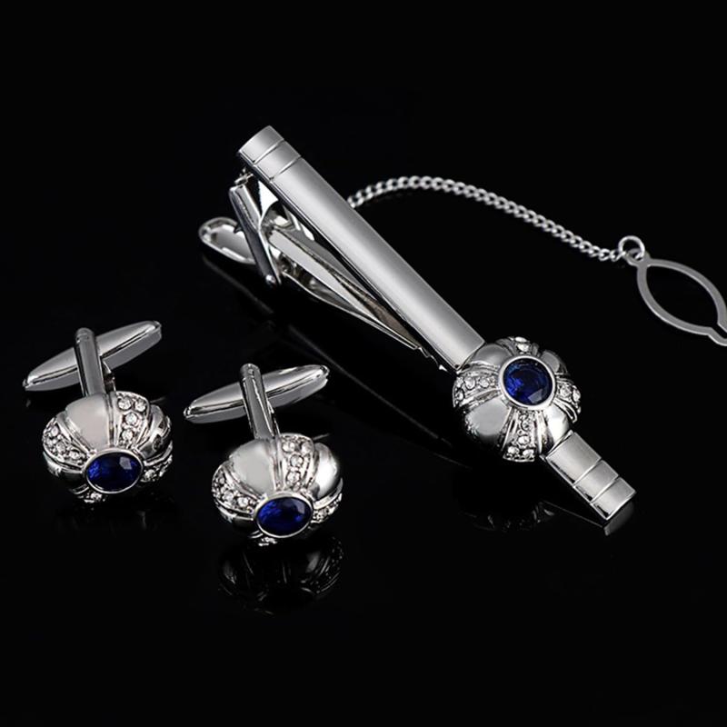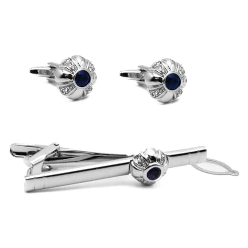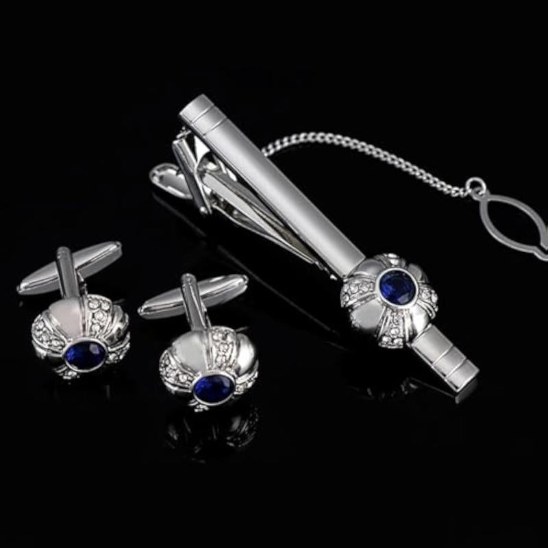 Elevate your formal business attire with this silver plated 316L stainless steel cufflinks and tie pin set. The classic design with stone accents adds a touch of sophistication to your look.