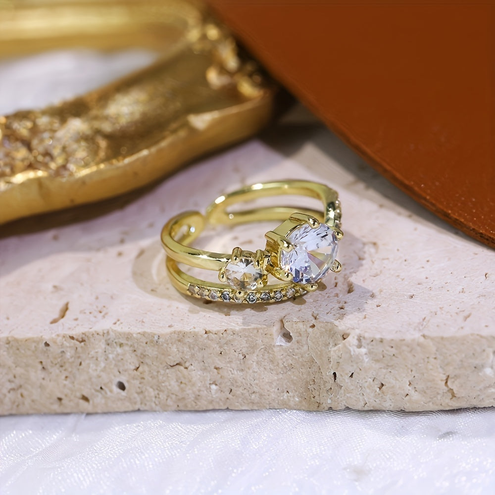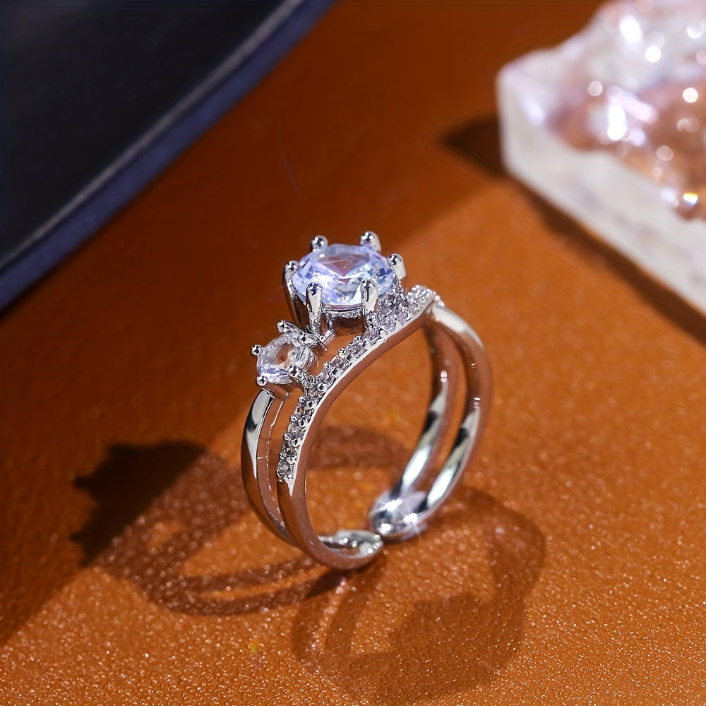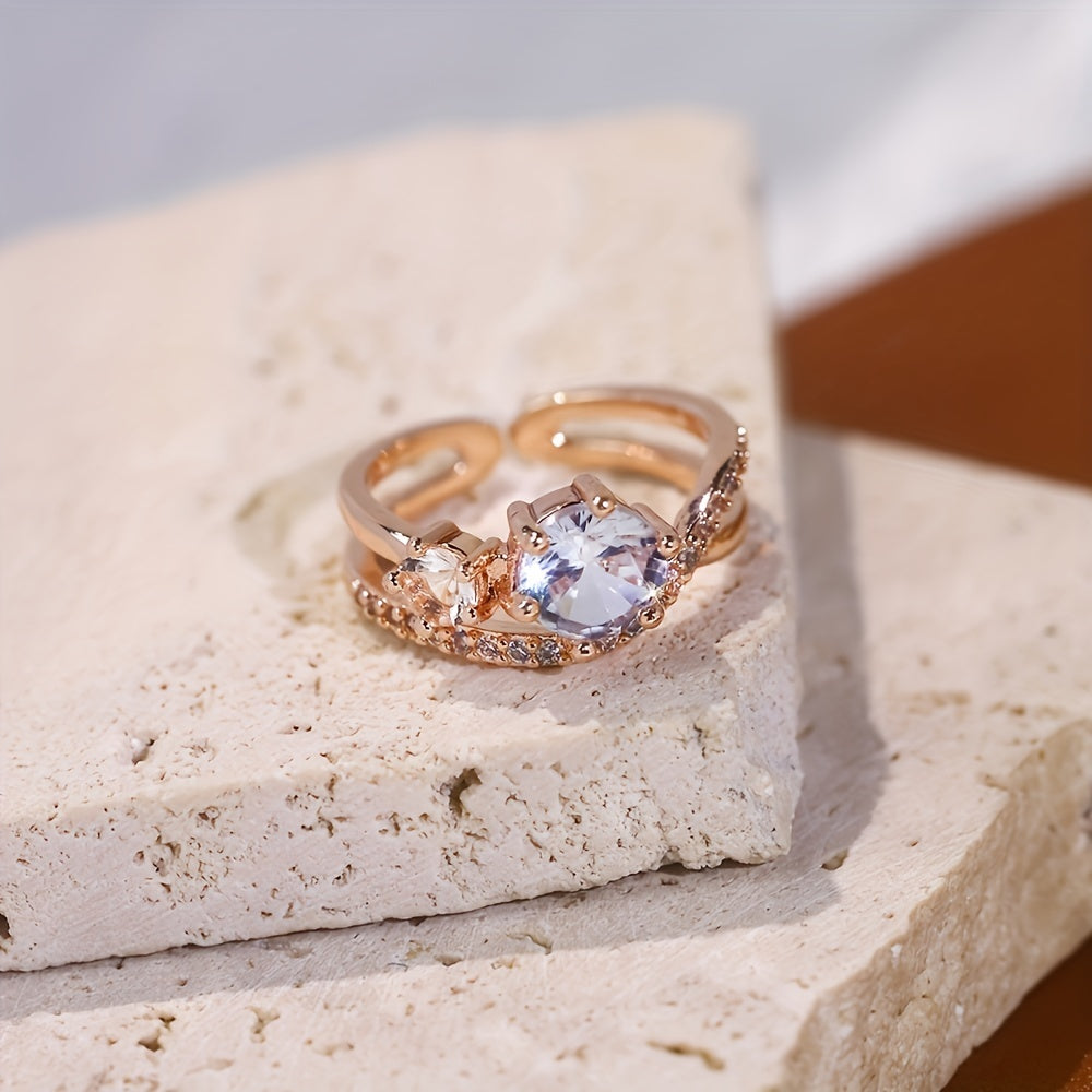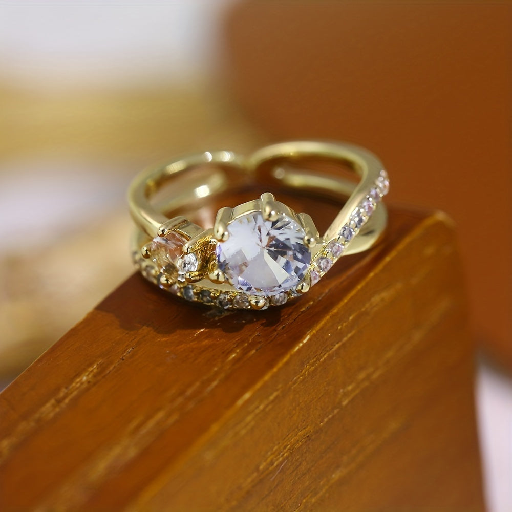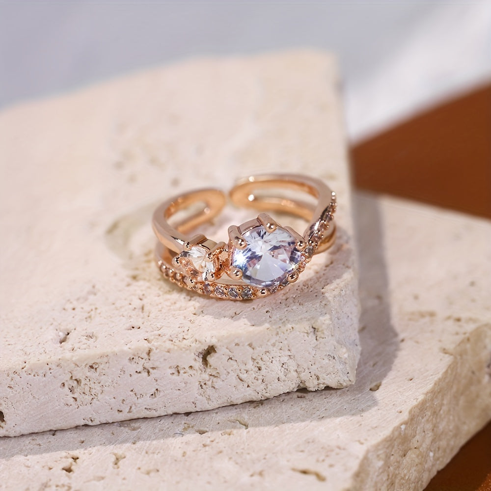 This elegant adjustable ring with zircon stones is a perfect birthday gift for any occasion.