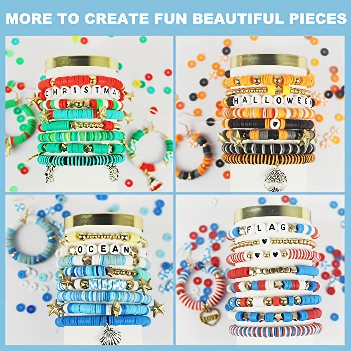 Create unique jewelry with this polymer clay bead bracelet making kit. Includes 24 interval flat beads in various colors and a charm for added detail.